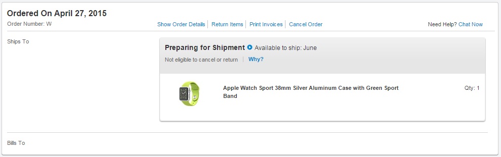 I ordered one around 1PM mountain time (2 hours after you) and...nothing. My heart skipped a beat a little while ago when my iPhone lit up with an email notification from Apple...but it was just the "Apple Watch is Here" announcement. They should add the phrase "And You're Not" to the email.Same here! Ordered yesterday around noon and preparing to ship. We'll see when it goes out!