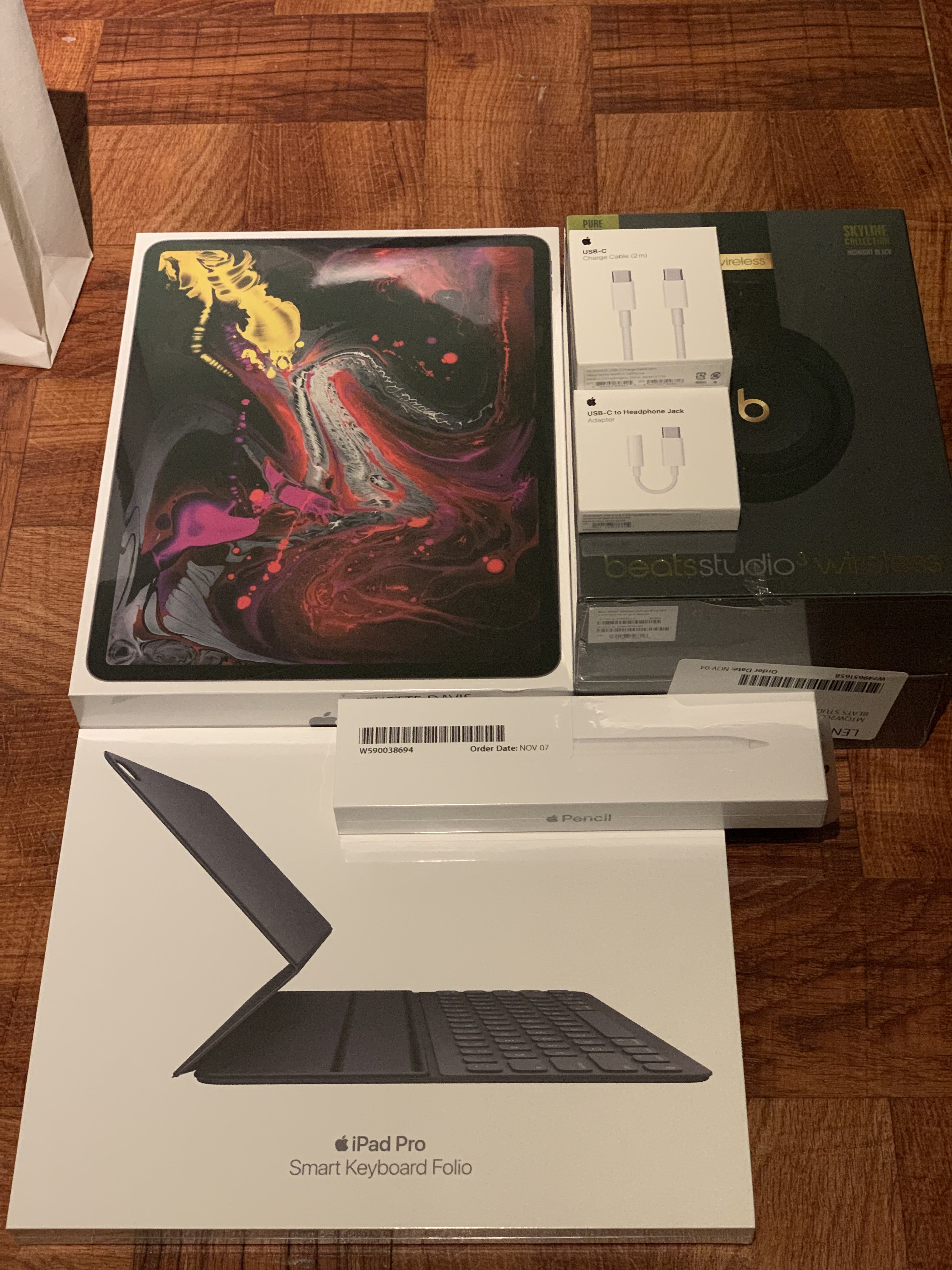 Got mine noon time 11" 256GB wifi+cell was not sure if my chose it the right one I had the first 12.9" iPad pro and sold it because it was just too big, so I didn't spend the box when to the local Apple store played with both and changed it to the 12.9" 256GB wifi+cell they have them in store I hope I made a good chose, BTW need to go back was not given me the $50 student discount that I had on the 11". I ask the person twice that he will not forget to apply it. my mistake not verify it at store