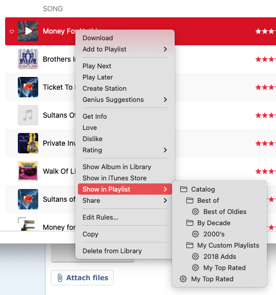Since that didn't work, I went back to the Song level and get to where all of my songs are displayed. I can select multiple songs at once and right click and add them to a playlist, however, I don't see how I can see if I've already added a song to a playlist. I checked the columns and don't think there's one that would tell me what playlists a song is already in just by looking at it.