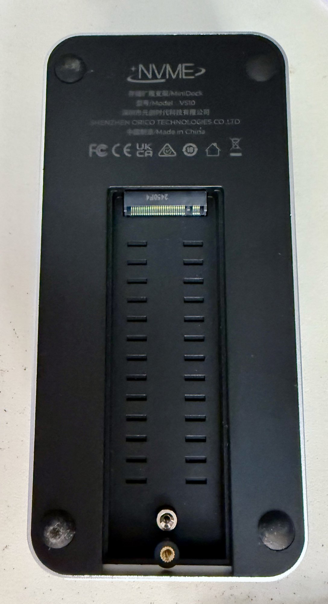 I've included an image from Orico's MiniDock page and one that I snapped, of the NVMe M.2 Bay.