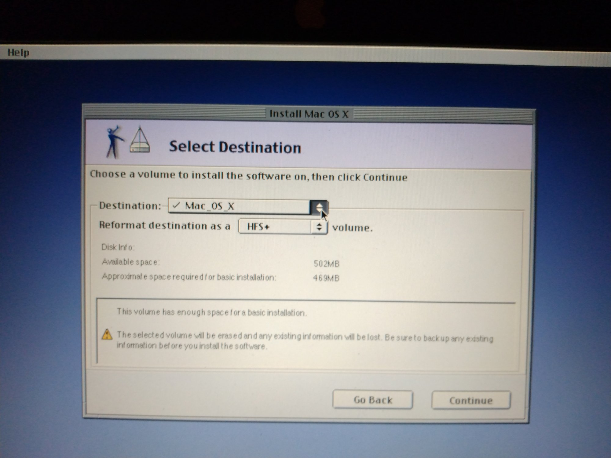 I'm trying to install Mac OS X DP2 on my Lombard, onto one of the two 5.5GB HFS+ partitions I set up in Drive Setup on OS 9.