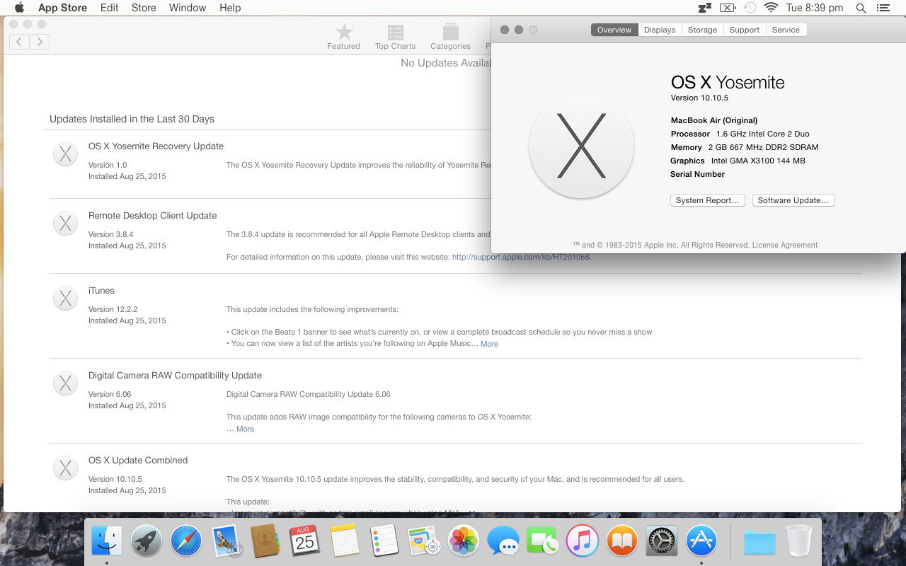 7. Once system is booted and working well (except Maps, and some other known issues), I've ran the OS X Update Combined 10.10.5 from AppStore.