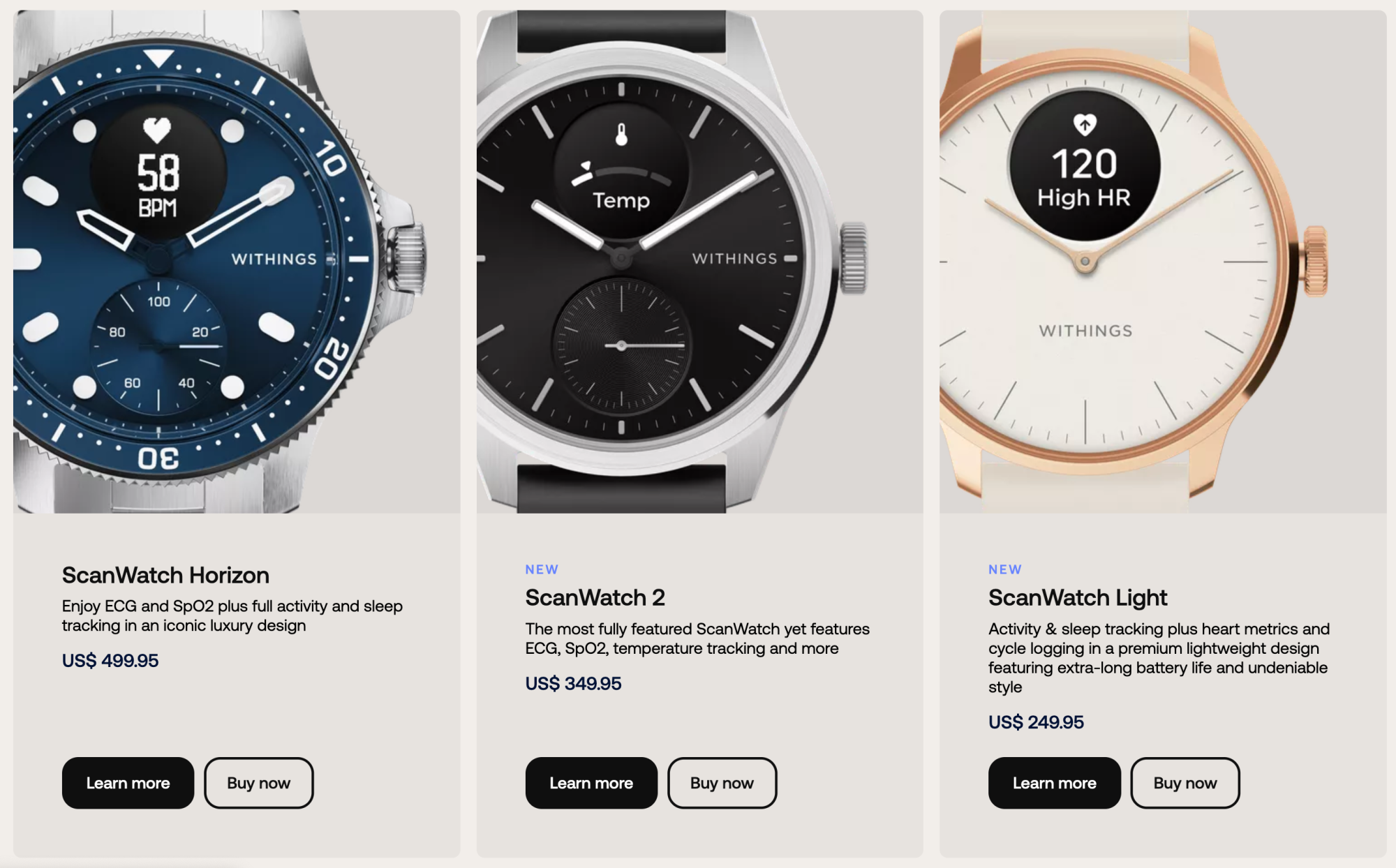 - Saphire glass (on ScanWatch 2, see comparison page for other models)