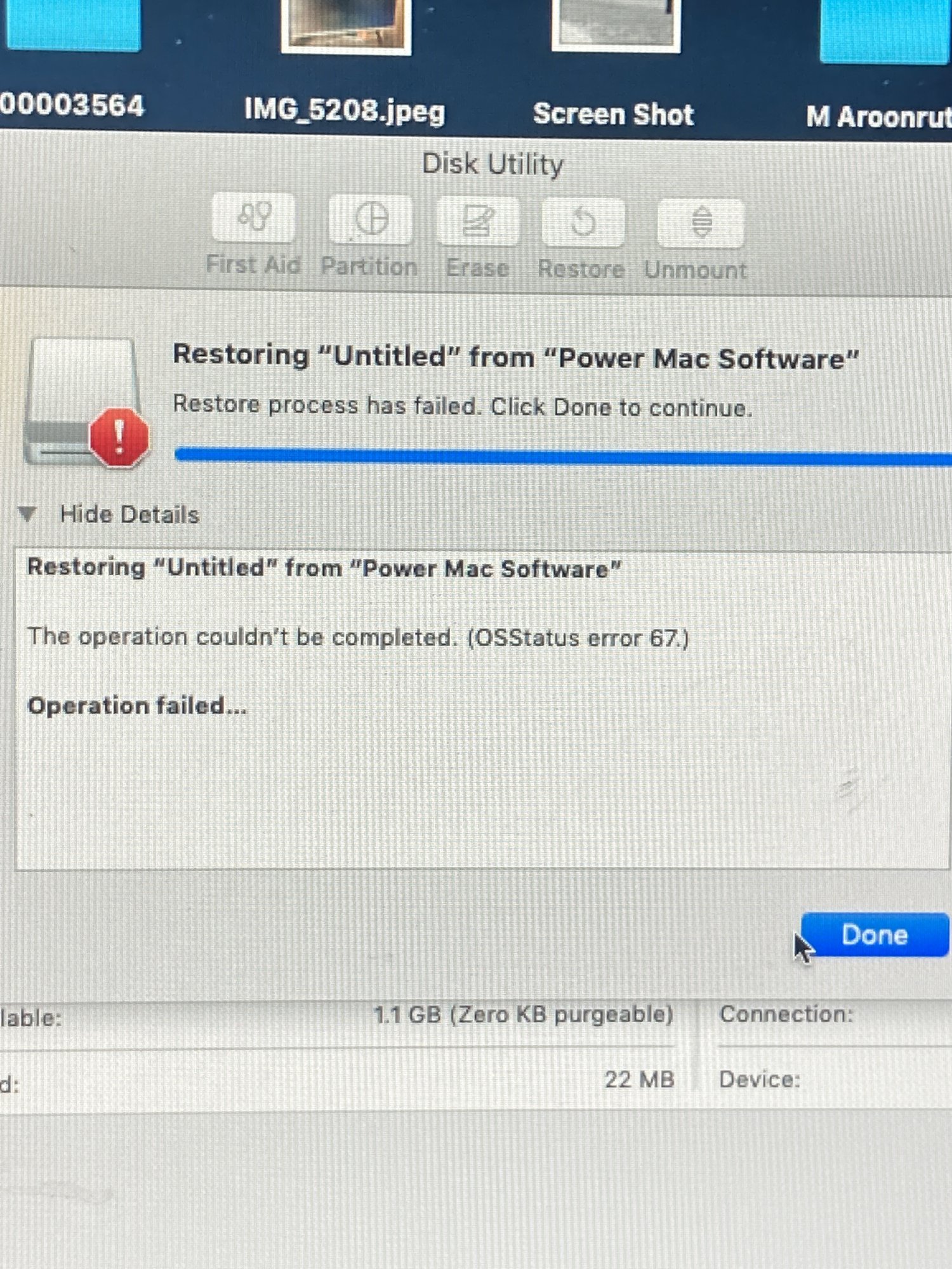 trying to burn tiger for a g5 to a usb and also to a hard drive partition but it kept having this error or stalling immediatly with no error.