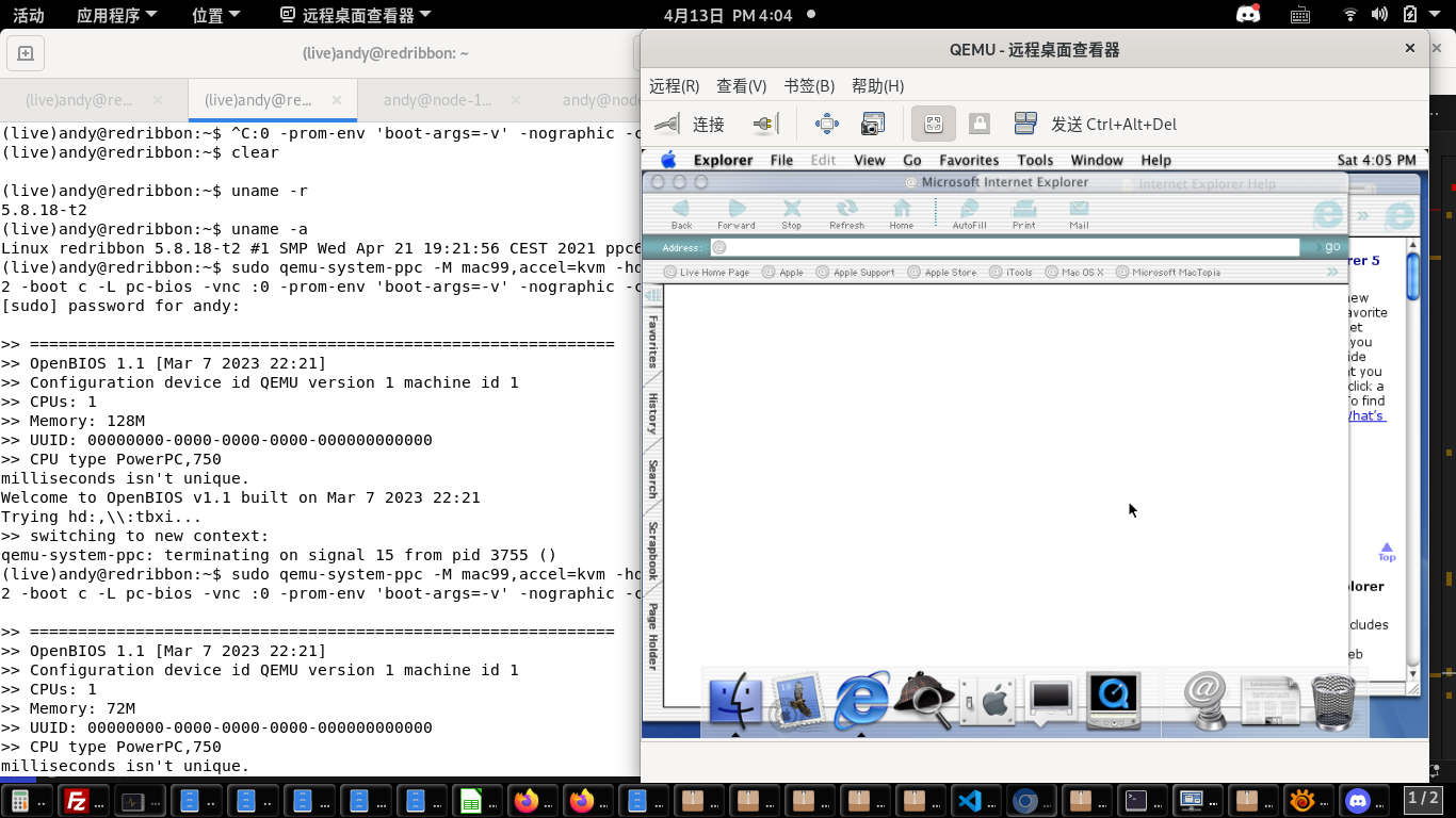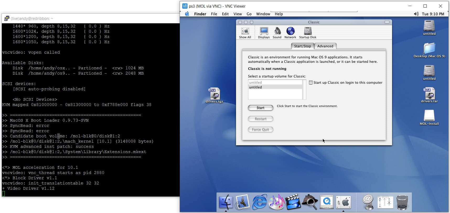 as regards getting a current PPC Linux installed and running, (im not sure if anyones tryed running MOL there yet?)