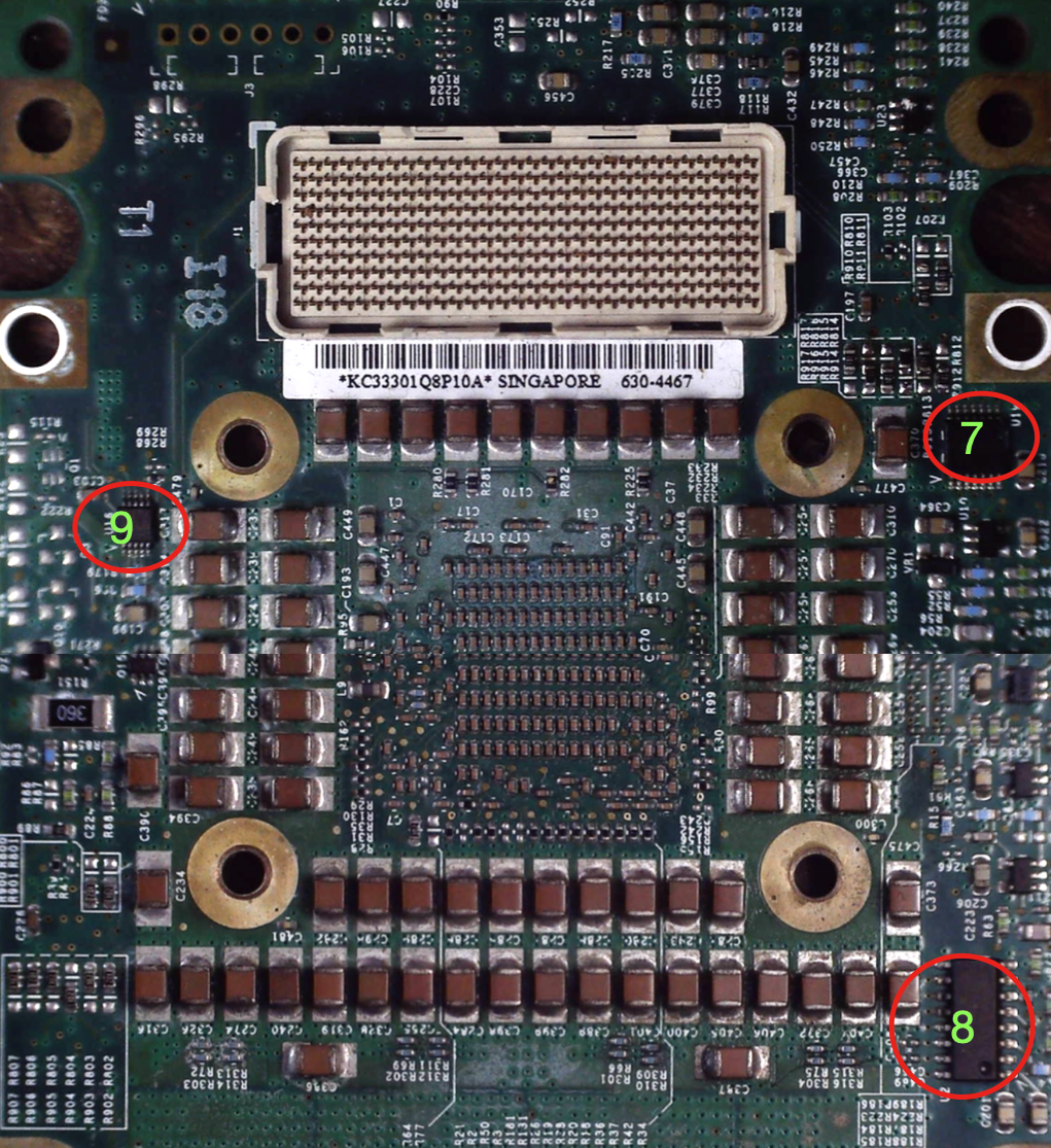 Going back to the resistors, there are six rows with 12 positions and these appear to be vary on different speed boards. I cannot test any of this because I do not have any of these boards to modify. So I presume that these resistors could be the multipliers and possibly the voltage to the 970 cpu.