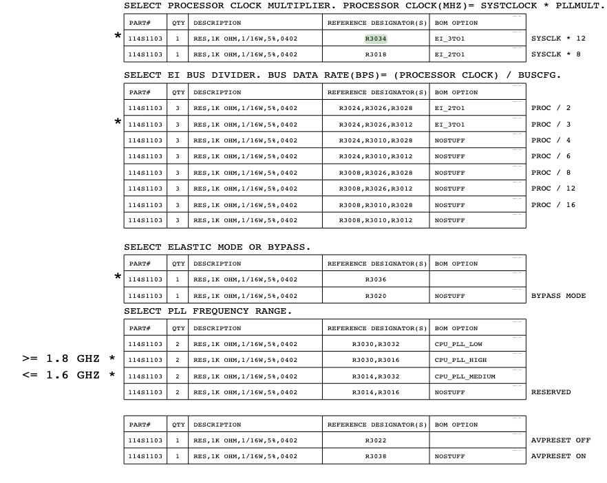 Just underneath board near the connector which attaches the daughterboard with the CPU on to the motherboard there is a bank of resistors and these are soldered differently on different boards. The other things that appears to change on the boards is the row of crystals (i presume that is what they are.)