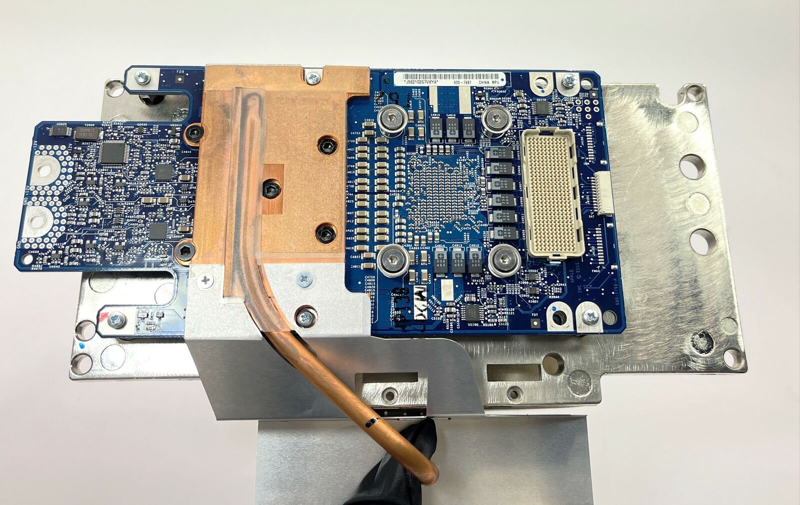 Looking at the above board for the PPC2.7GHZ cpu, we can see on the top far right our holes and below this we can see a space which we assume would have a connector labeled (looks like) IBM then there is an actual connector labelled SAT or SAF and then the space may have had a connector and it is labelled FMAX.