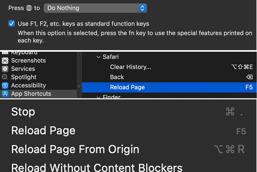 I need to change the default settings of function keys, e.g. assign the F5 key to web page reloading.