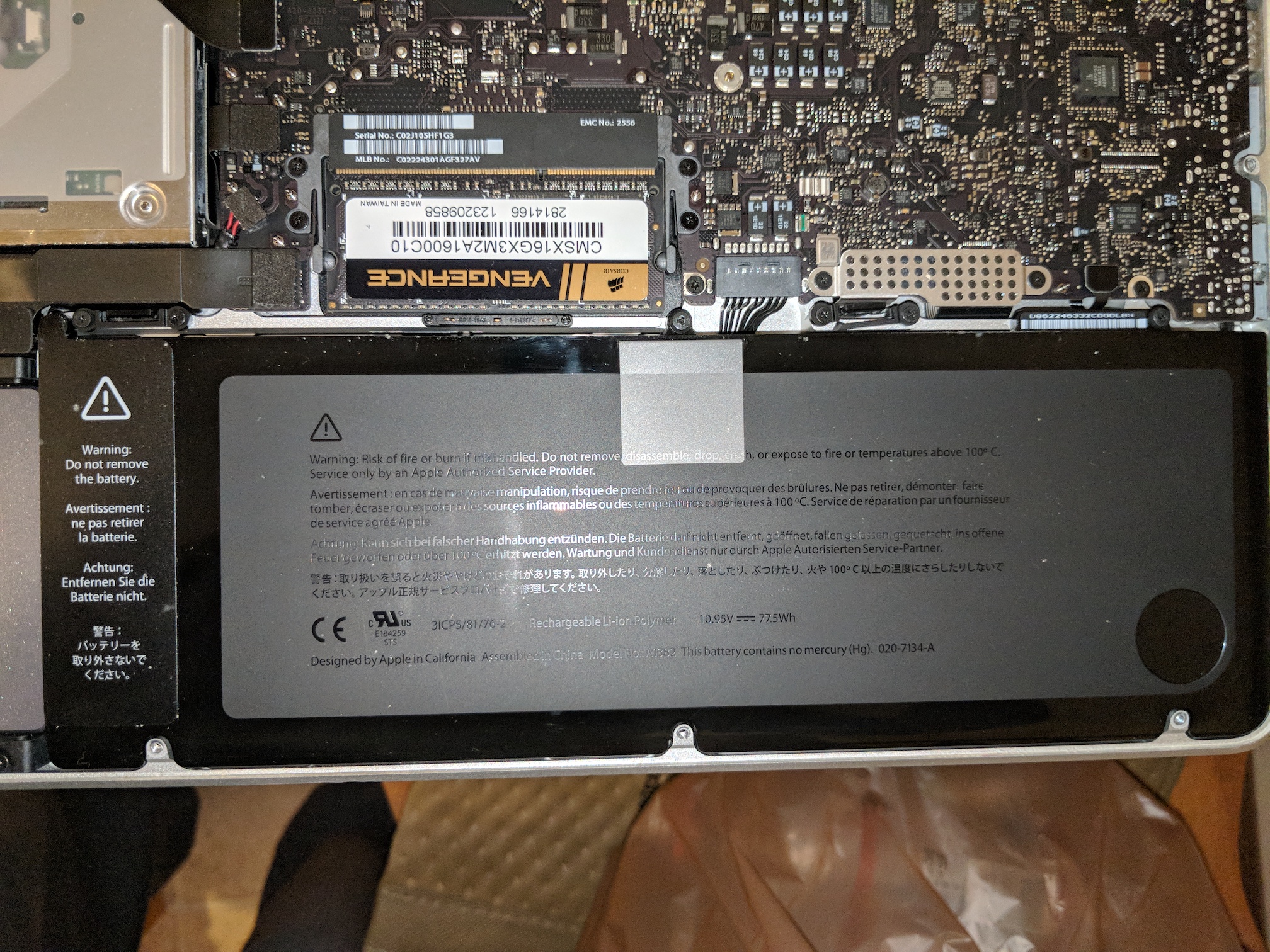 How did I know it was an OEM Apple battery? The markings/labels are pretty distinctive, the new one matched the old one perfectly.