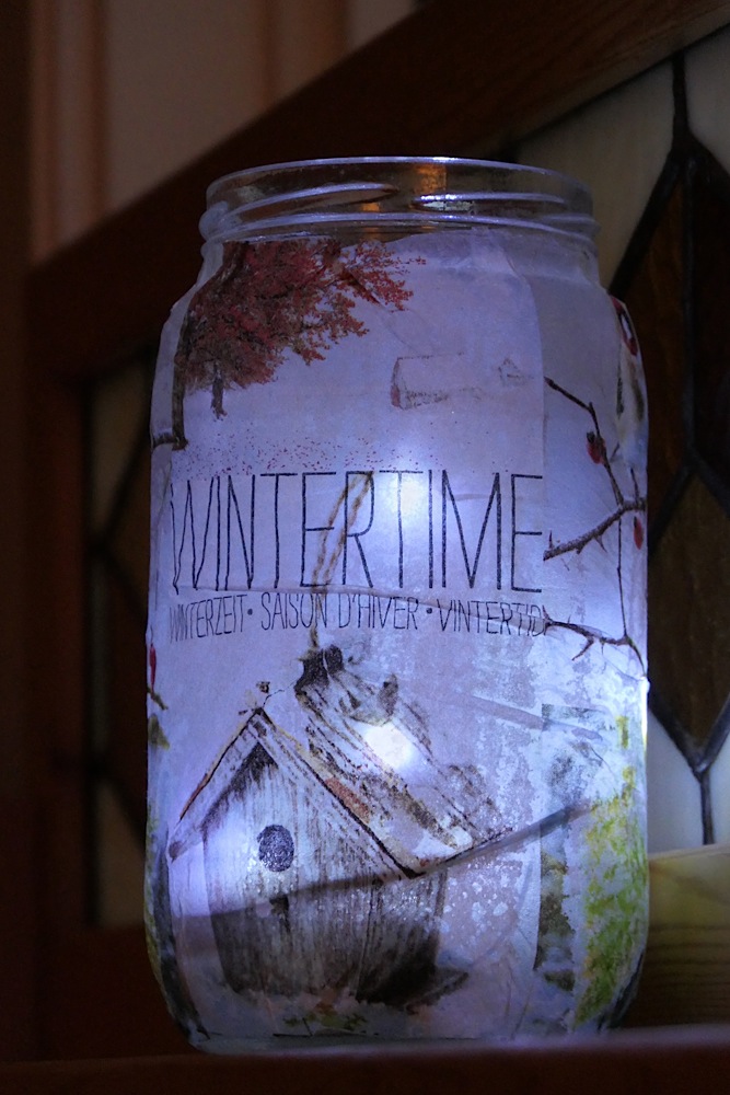 Since we are into overtime I might as well post this. A kind neighbour made this mason jar lantern for us. Just got around to doing an image.