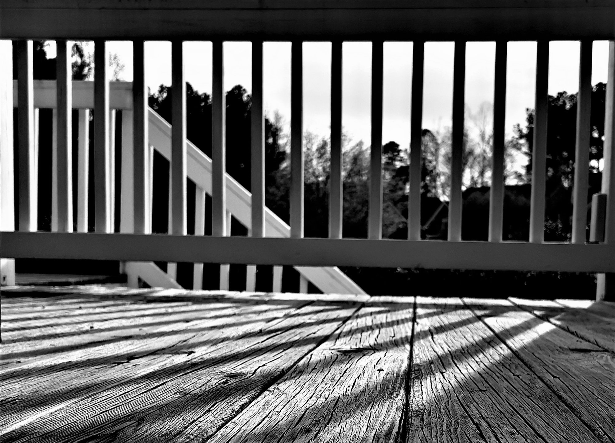 In the images below, the shadows offer a lot of structure to the images; in the first, the leaves on the tree and the shadows on the ground from said leaves create a framing effect around the church. The two fence images have shadows that reinforce the leading lines, and the interior room image has an increased visual interest from the shadow cast by the window muntins.