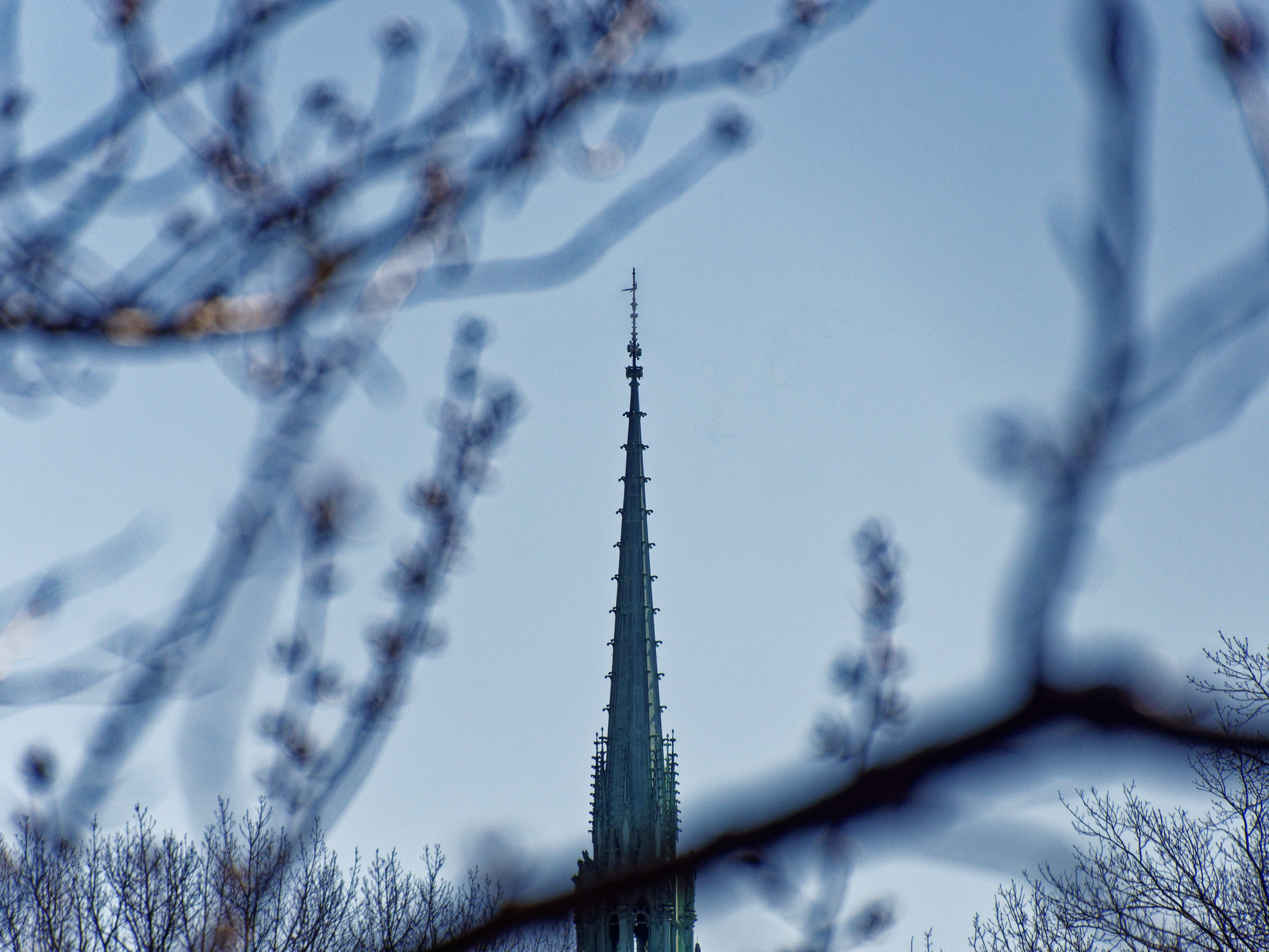 2 for your consideration . Both of the Cathedral in Newark , N.J. . I'd hoped to get the top spire with the blossoms on the trees open , but I'm a bit early . Maybe next week .