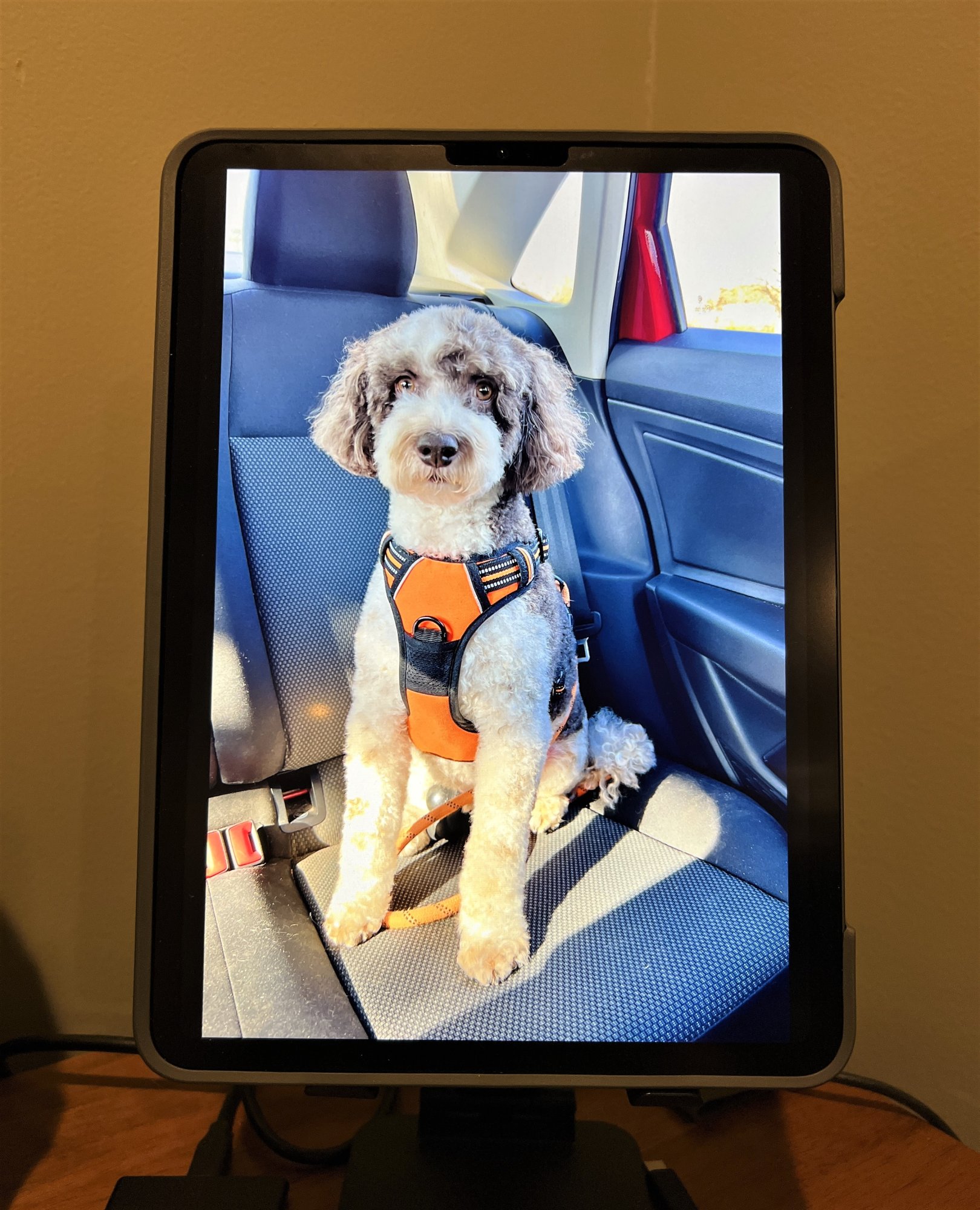 So sorry! 💖Ben coming home from the beauty parlor today, framed by my iPad Pro.😊