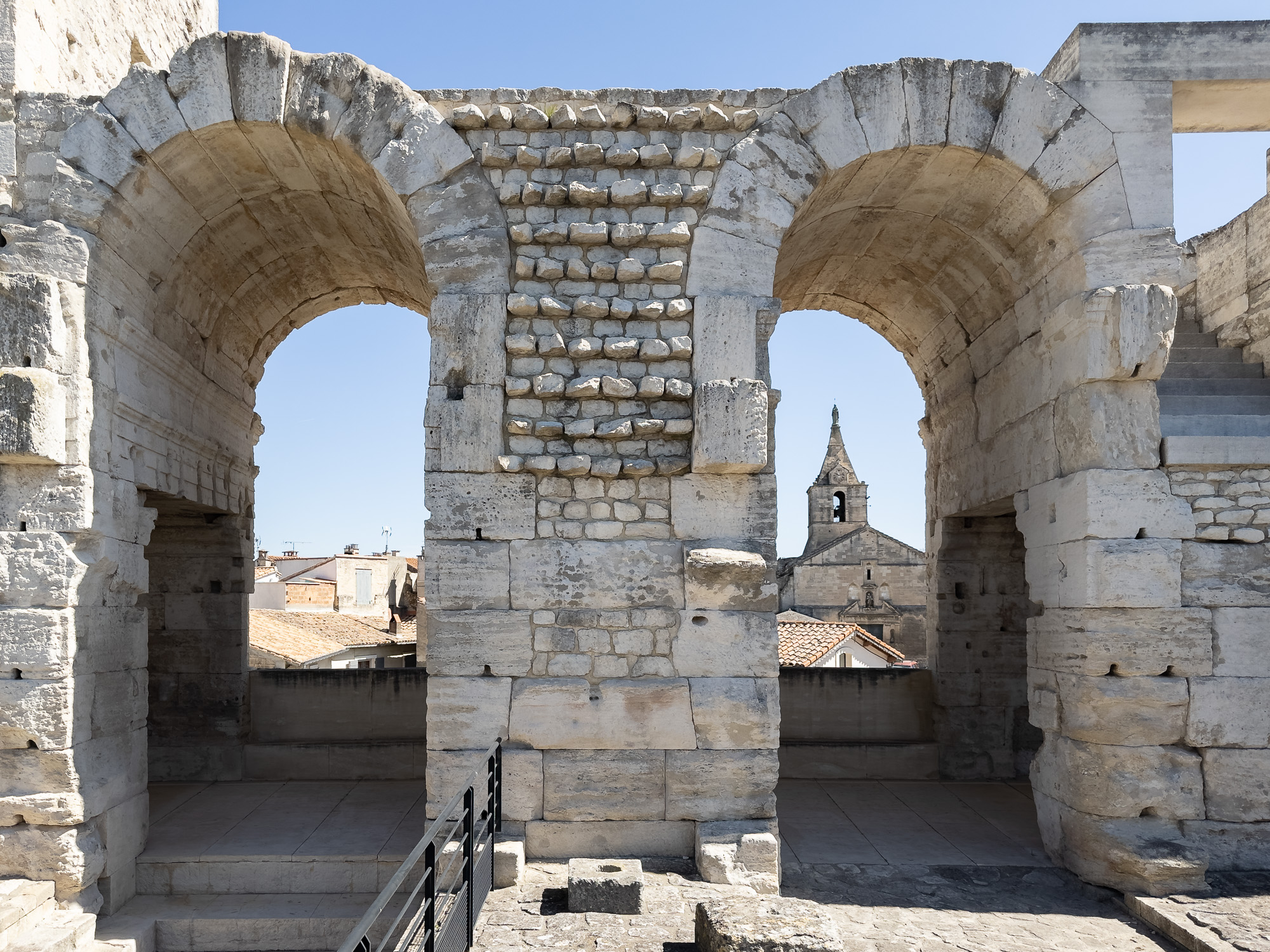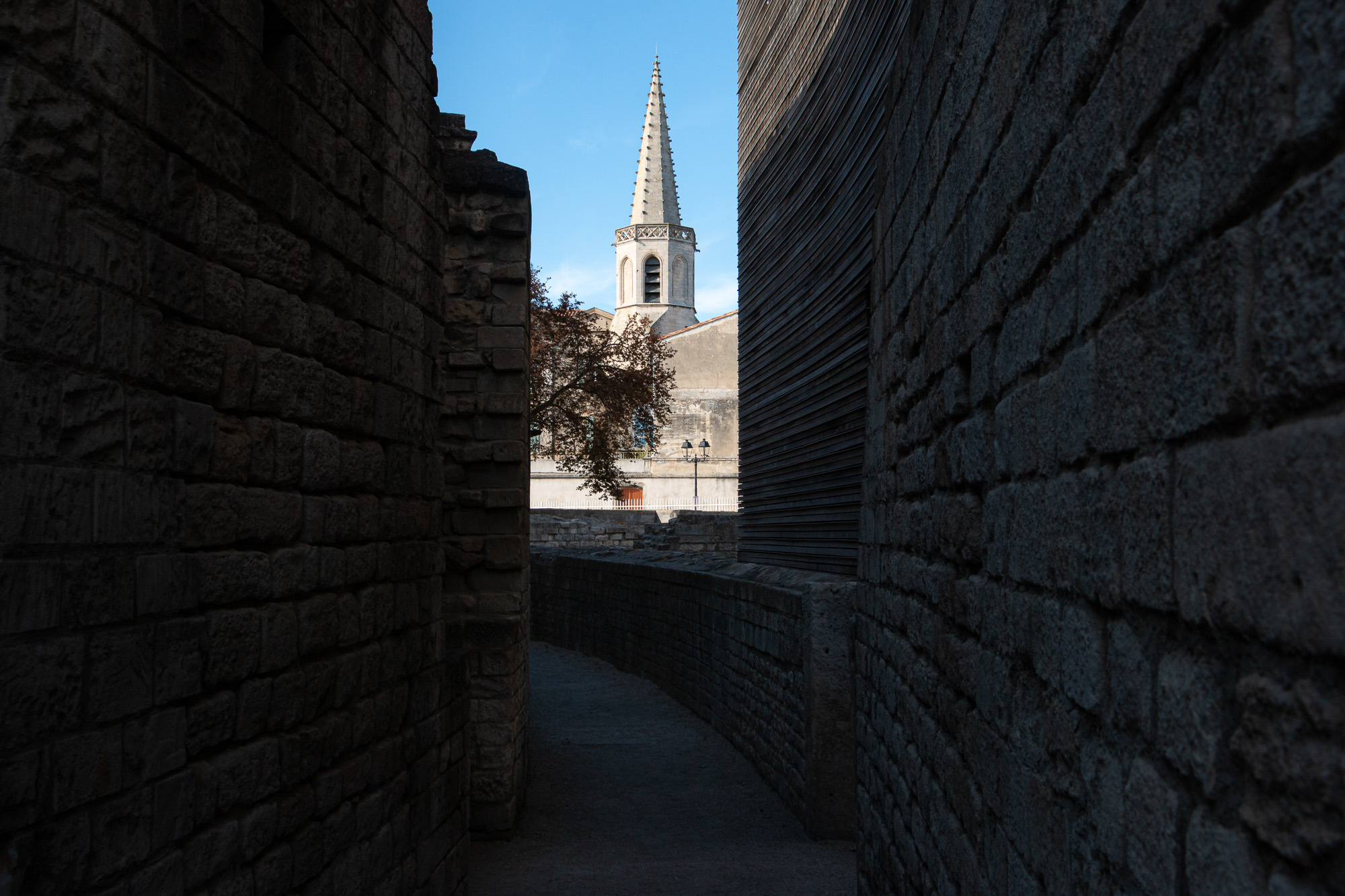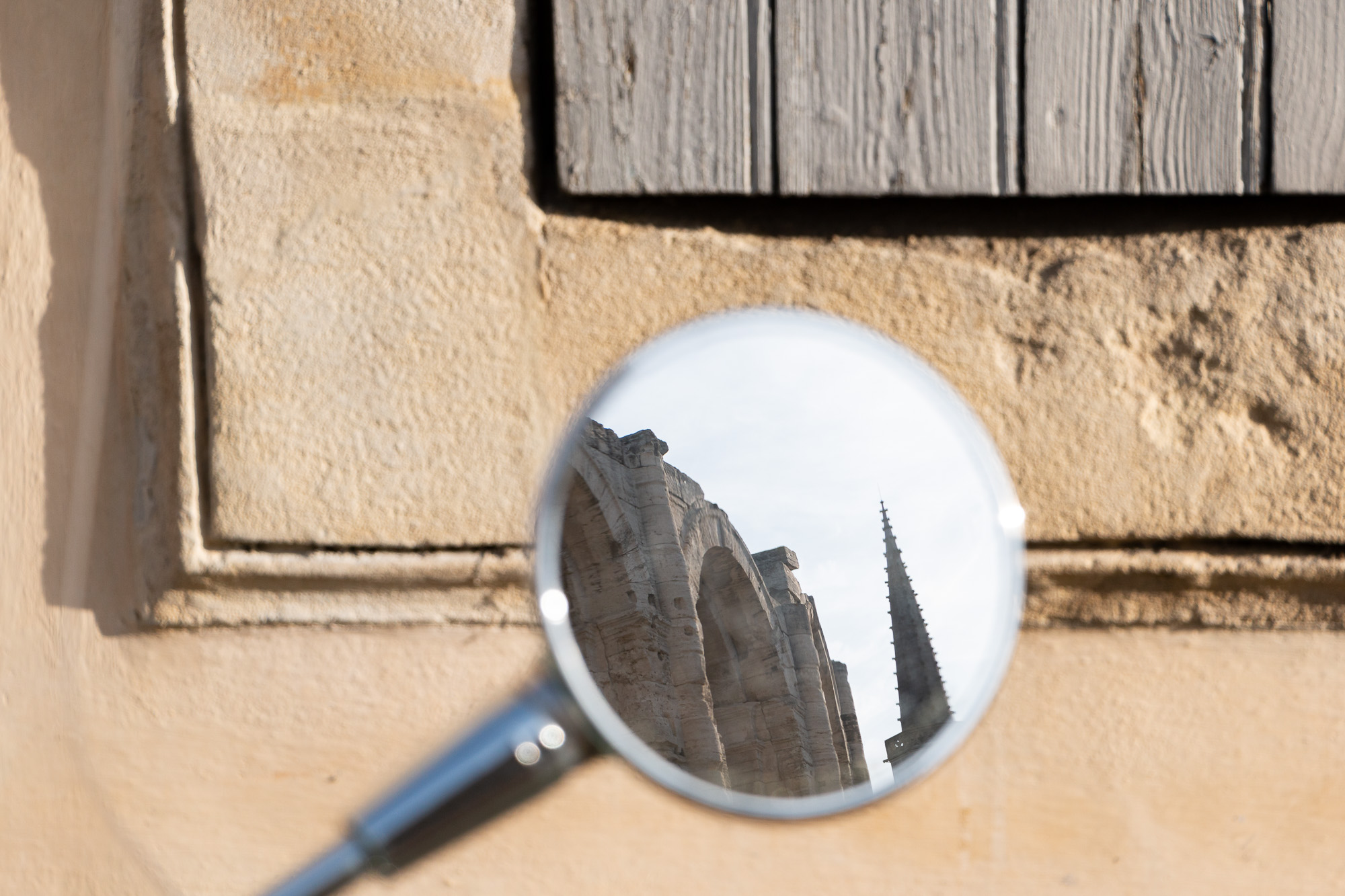 The city of Arles offered a lot of opportunities to focus o framing. Especially it’s Roman amphitheatre and its surrounding buildings allowed for some interesting perspectives – either using arches to frame a church tower, or a rear view mirror to capture the amphitheatre and a church tower at the same time.