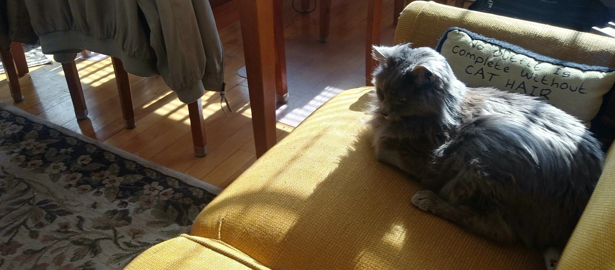 Yesterday morning in our east-facing living room. I am obsessed with the morning light through Roman blinds. Also with our cat Shadow.