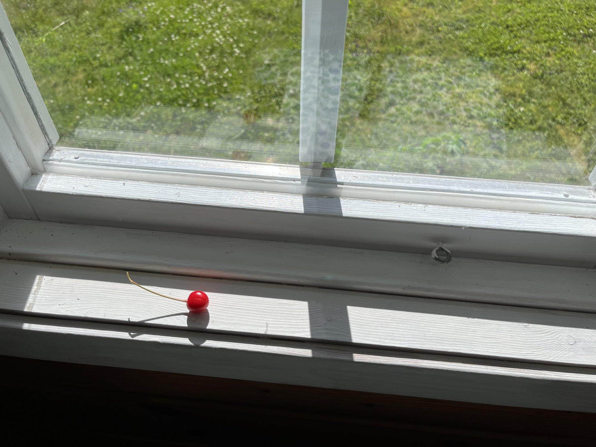 This morning a breeze from the window made it fly just there, on the carpet.