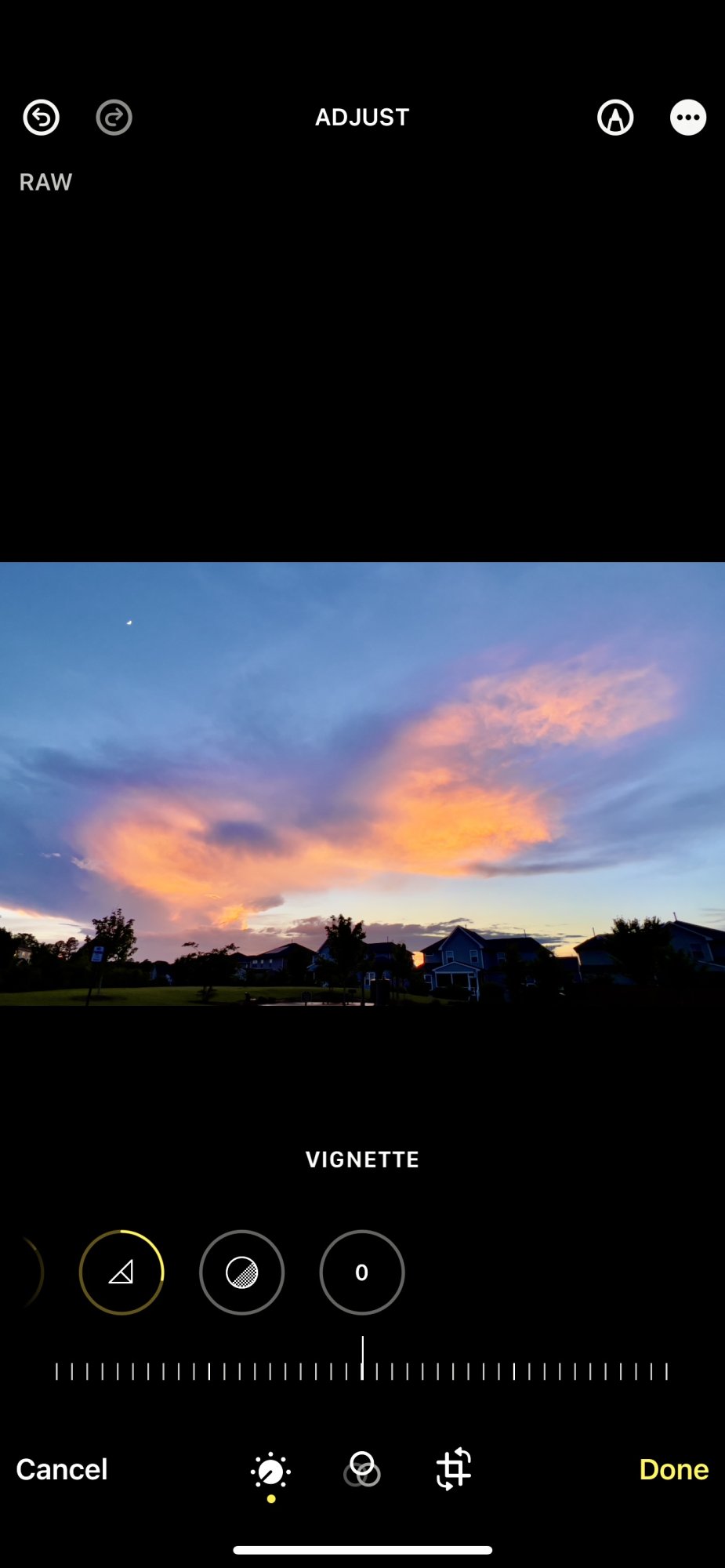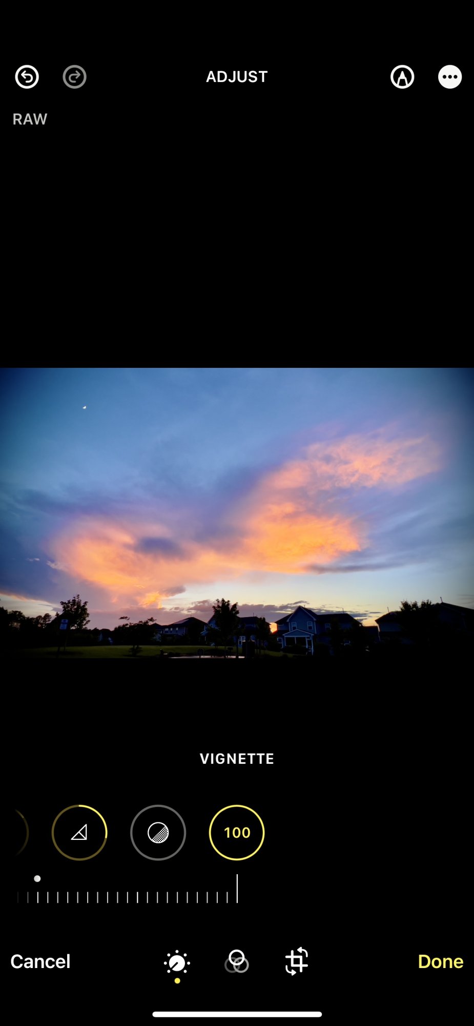 In the camera App on the iPhone the Vignette tool is the last tool. You can see the dark around the edges after I move the slider all the way over.Very interesting, thanks for the extra lesson. 🌹🙂