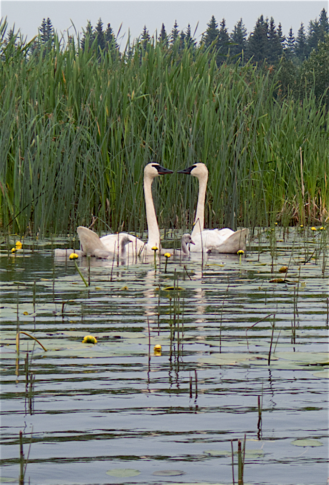 This pair actually has 4 cygnets, but two of them were catching up.