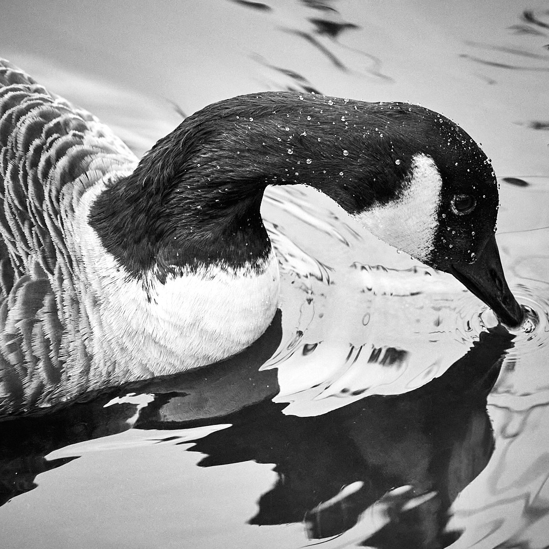 I don't often convert to black-and-white, but the goose's plumage is good for it, and strangely enough, the water had a distracting color tone to it.