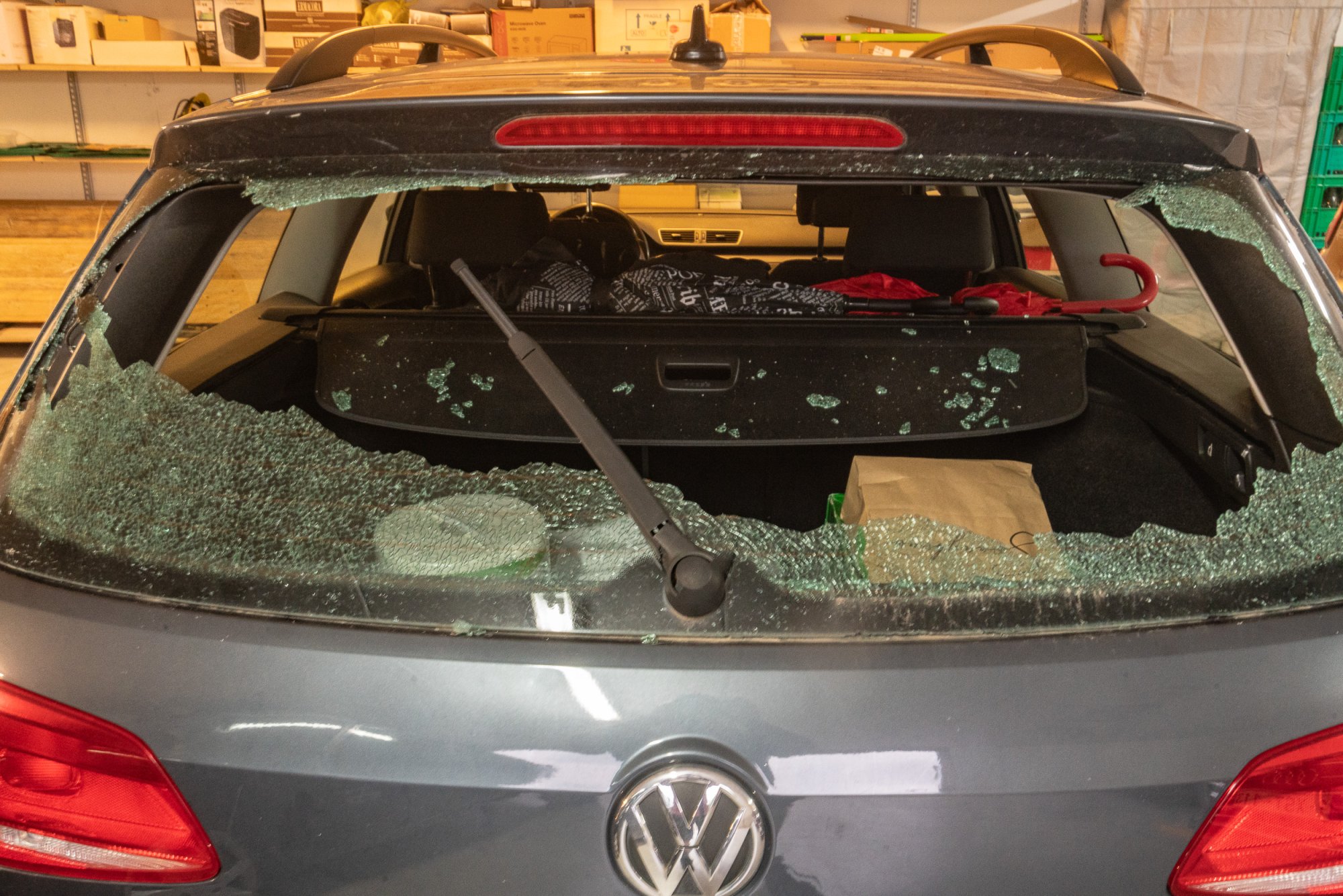 While the earlier photos were sunny day, these are from the morning of the 25th. At 11:11PM on the 24th baseball size hail began pounding the building for about 30 minutes, followed by rain interspersed with "normal size" hail. Created quite a commotion that evening as sounded like bombs exploding as repetitively hit the building! Thank goodness took out optional full coverage on my rental, so no problem returning to Hertz. These are only a few of the dents as damage on both sides, small dent on hood, and several smaller on roof rear. Attempted to swap out at Hertz 20 miles away but their inventory was destroyed by same storm, so drove the planned 120 miles to the next hotel with crack in windshield (passenger side) and turned in at the Milan airport the next day before the return flight. Was told could turn in a Verona airport, but would have to find other transportation to Milan, or private company could replace the windshield but would take one or two days - so elected to drive. Other residents at the B&B were not as lucky as it was their private car, driving from Germany and the UK, and were contacting their insurance for claims repair. The German family in the VW were originally parked in the spaces seen behind me and the hail must have been soming from that angle with the front wall protecting me. Their friends, staying in another area were not as lucky as it apparently destroyed their Tesla, totally demolishing the glass roof!