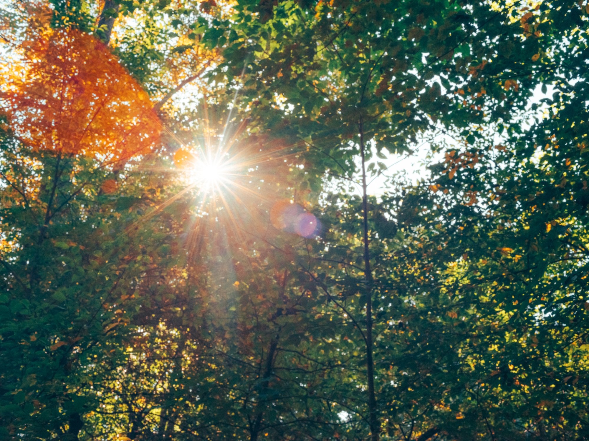 Once you have your sun, you will need to find a location where there are trees or buildings to help block just a bit of the sun (you can see above that you can even shoot indoors if the sun is directly out a window. As a general rule, when you shoot straight into the sun you will typically just get a hazy blown out white area. However, if you can find something to partially obscure the sun, you can work to angle the camera so that a brilliant burst will show. I chose this theme for later in the year when the sun is lower in the horizon which will help your cause, so be sure to go out before mid-morning or after mid-afternoon.
