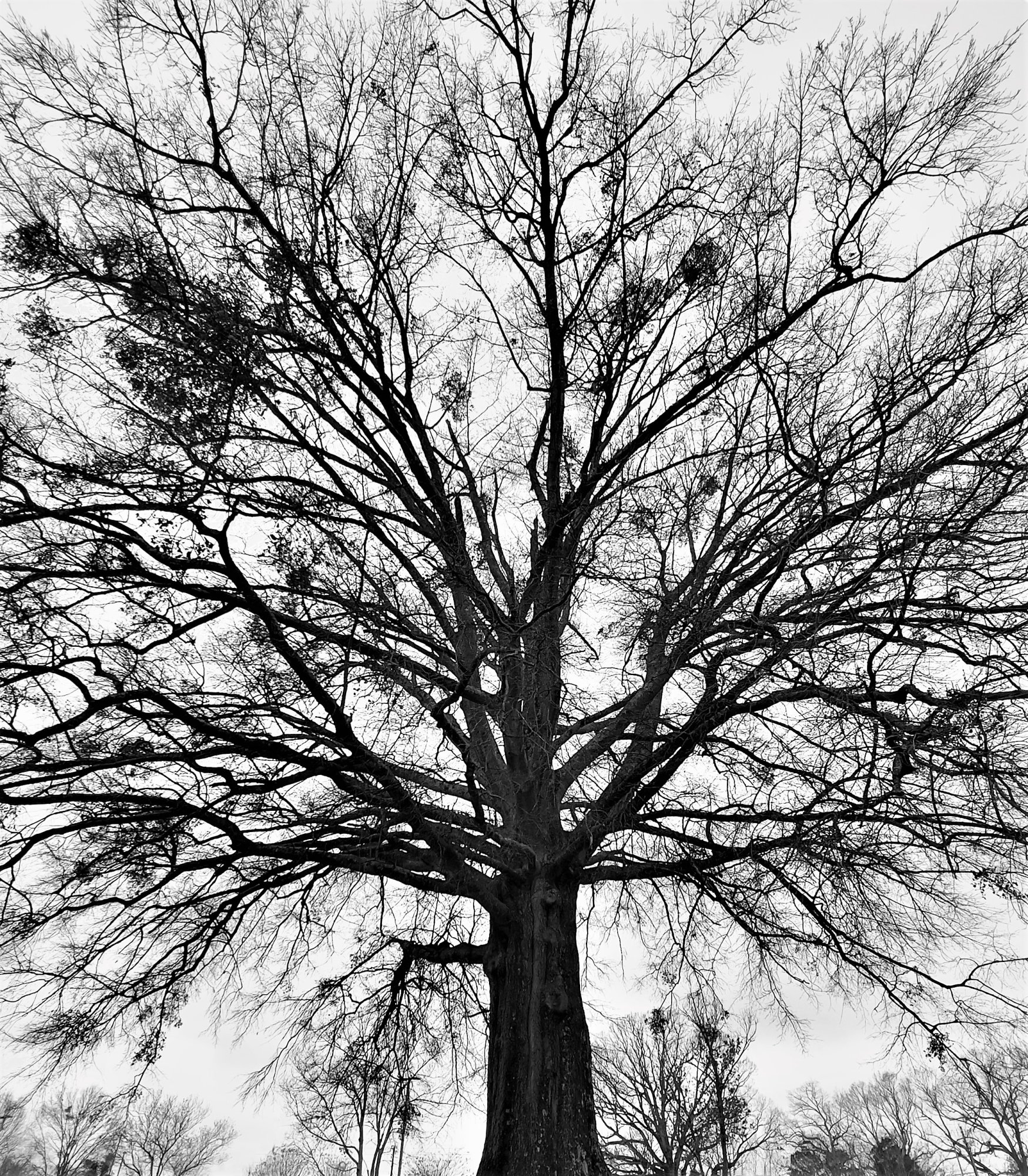 Happy to see you practicing so much this week; this is great in black and white.Got to do 3 things I really like today. Eat at one of my favorite restaurants, shop at Trader Joe's, and get some snaps. This old Oak tree is huge, and smack dab in the middle of the parking lot at Trader Joe's.