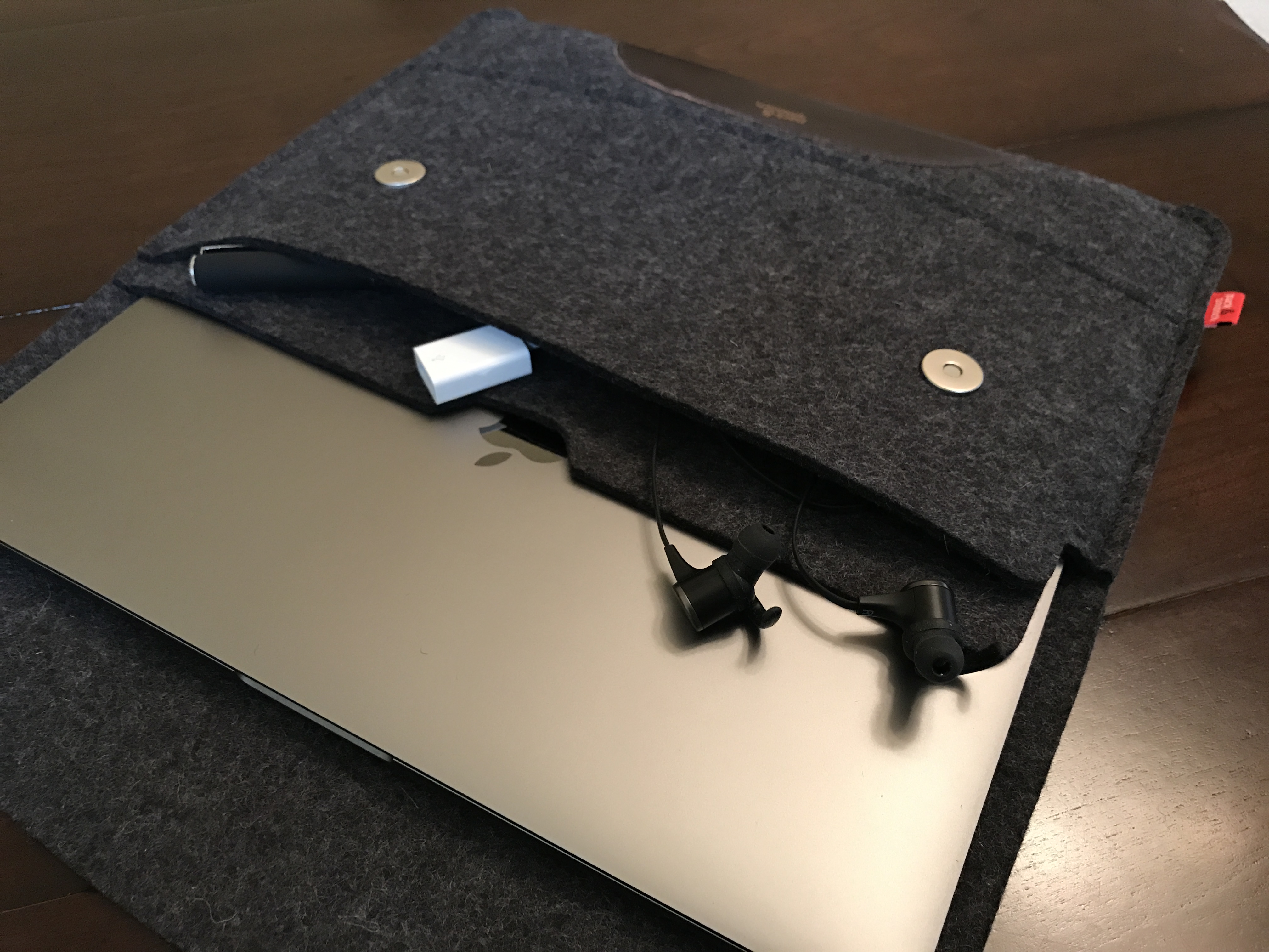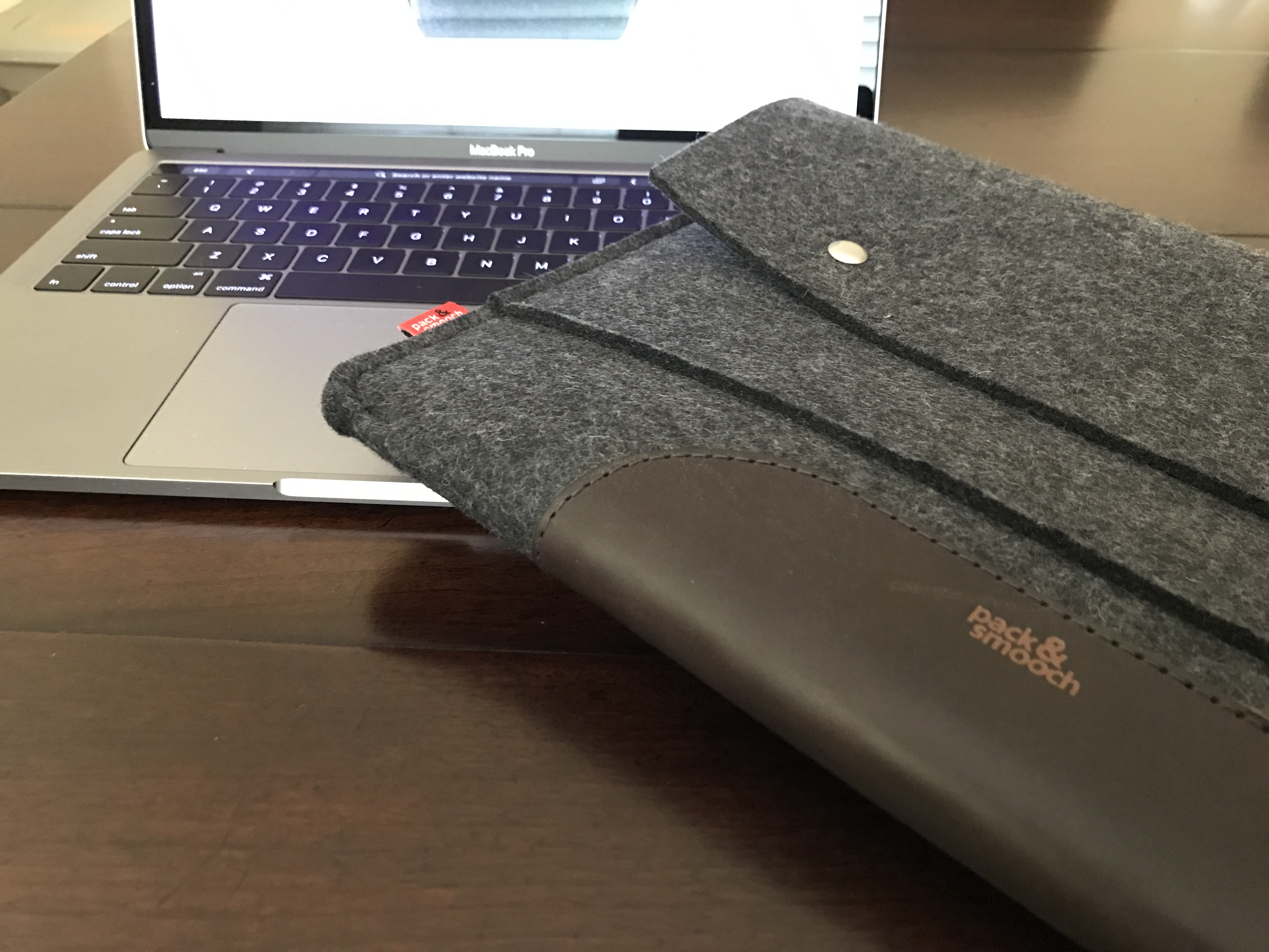 After much searching, I decided to order a Pack & Smooch sleeve for my new 13" Macbook. The sleeve is made for both non-touch bar and touch bar models since they are the same size. I have used pack and smooch sleeves before and have always been a fan.