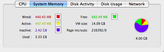 I'm running on a C2D MBP, Rev. B. I recently bumped up my rig to 3 GB of ram, because I would page out a lot when I was running with 1 GB. However, I find that I'm still paging out a lot(at a slower rate, however). I'll normally just do basic internet stuff, but dabble a bit in FCP, Photoshop, and iMovie. Is this normal? If not, what can I do to about this? Thanks!