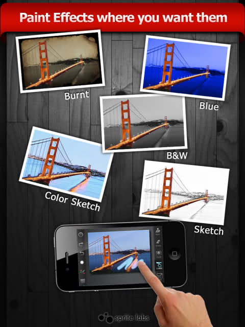 With Paint FX you have a possibility to let your photos express your emotions and tell your own story. Choose from ton of effects and filters and apply them at any part of the image with a simple touch of your finger. Indulge your creativity and share it with the world!