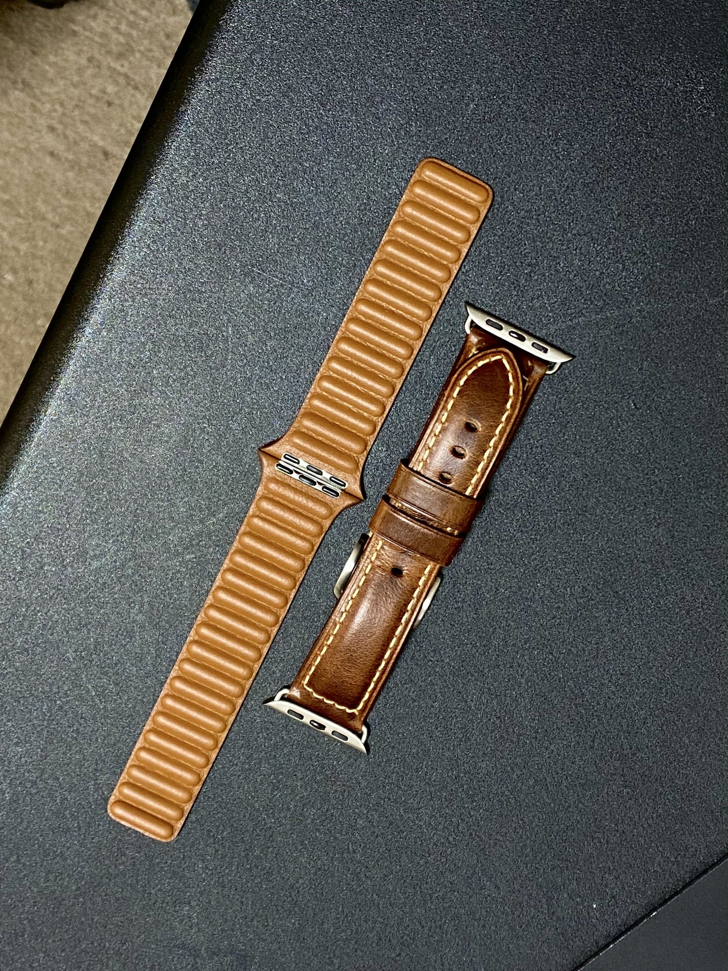 That said, I have zero faith in leather products that arent hand made in a country that has high manufacturing standards (such as full-grain hand crafted goods made in USA). A watch band like this leather link (I own two LL fyi) is a finely designed composite of a bunch of different materials to make a band that wont fall apart easily with heavy use, with its thin and gracile construction, implanted magnets with little margin around, and painted with a PU edge. There may be a layer of "top grain" leather on the very surface, which is the very top of the animal skin (most durable, patina-able and costly), but its razor thin at best, and non-existent at worst. How can this be? Well, the lower layers of skin can be painted and embossed to appear as top-grain leather (the user can almost never tell).