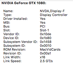 Did a search on this and was unable to find any related posts... Having an issue with a GTX750ti linking at 16x 5GT in Slot 1. I realize this was an issue with older Boot ROMs and cosmetic. Running High Sierra with 141.0.0.0 Boot ROM and the card is linking at 8x 2.5GT still. Some screenshot attached with details. Cl!ng is showing low scores as well. Performing the same as the High Sierra ROM was showing.