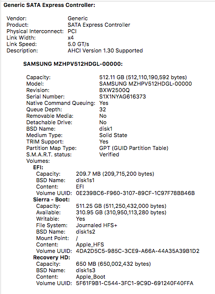 The only thing I had to do is to enable trim via the terminal and that all.I don't recall doing anything special over and above the steps I followed in my post here to install the NMVe driver. I too was surprised (and thankful) to see the NVMe show up in the NVMExpress section in System Information, and for TRIM to be enabled (I already had enabled it for my other SSD drives). Maybe the Samsung 960 EVO is just compatible.