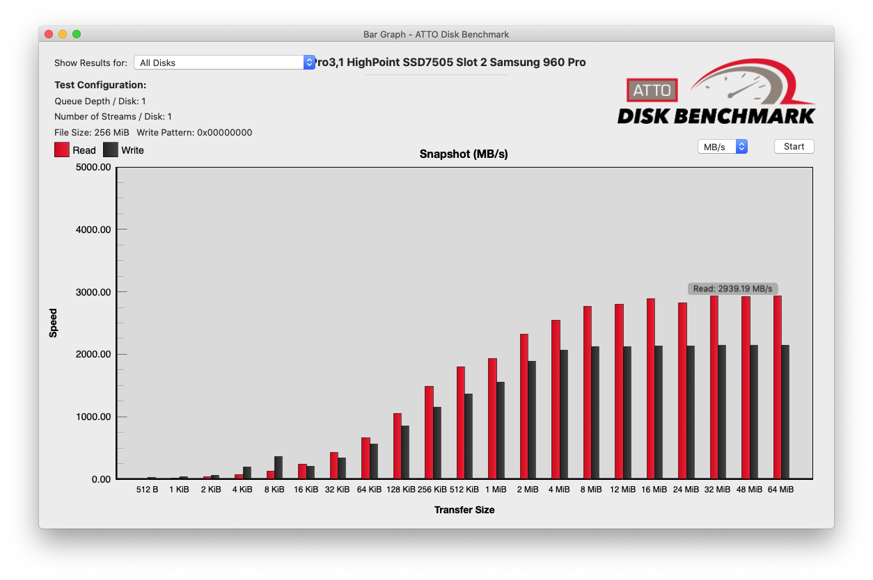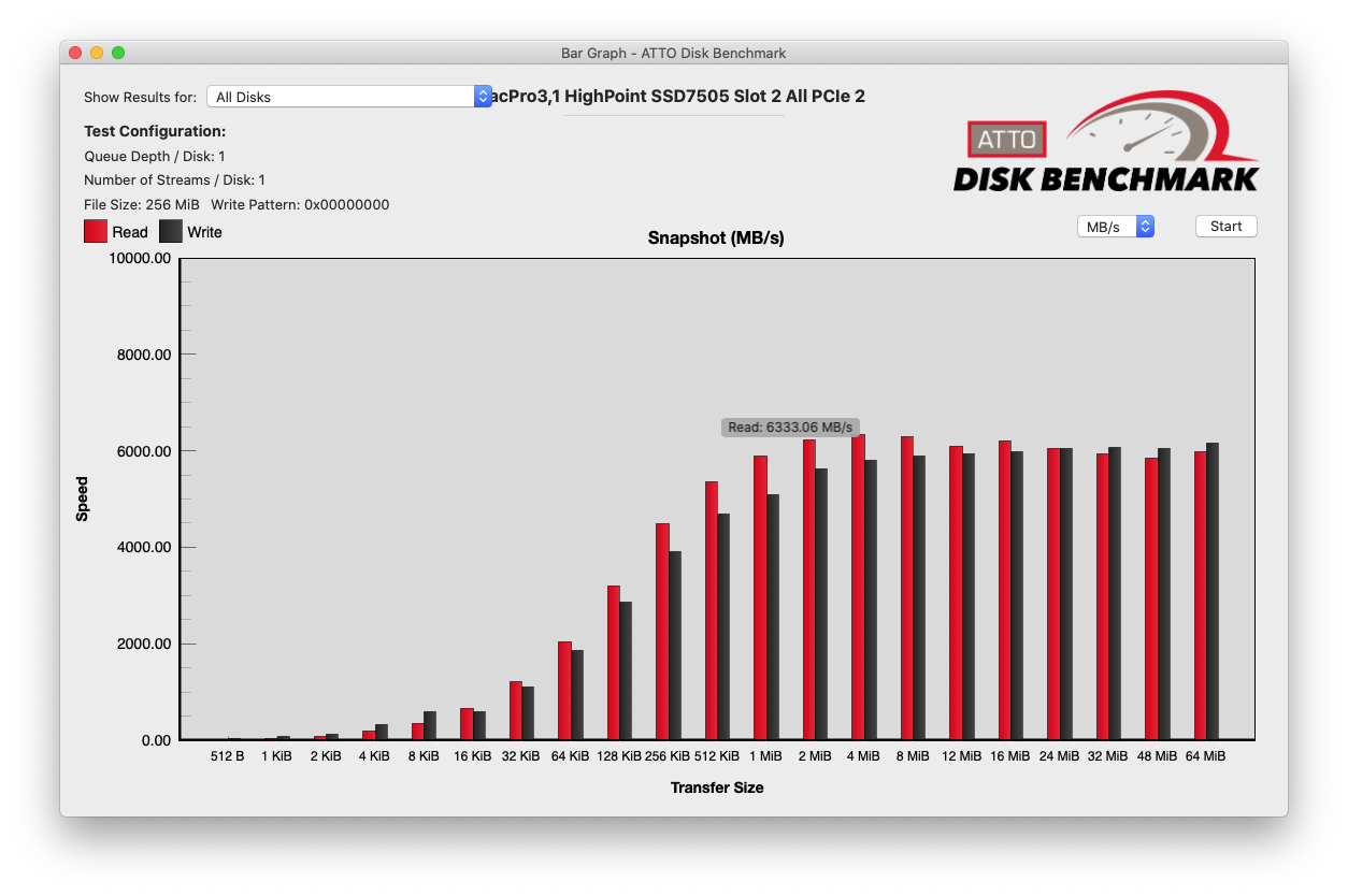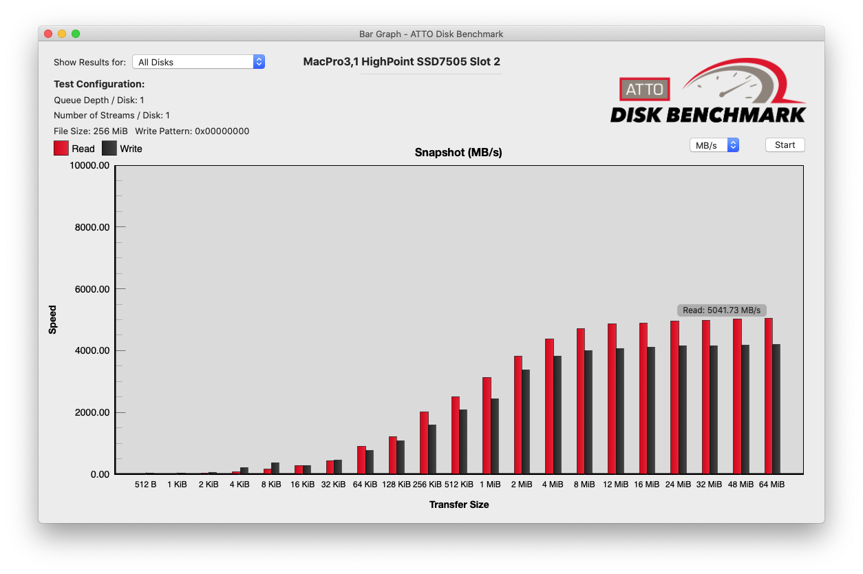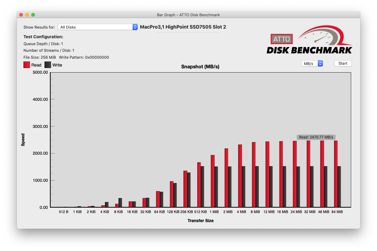 I've also attached some other tests with PCIe 2.0 x16 for the HighPoint SSD7505: