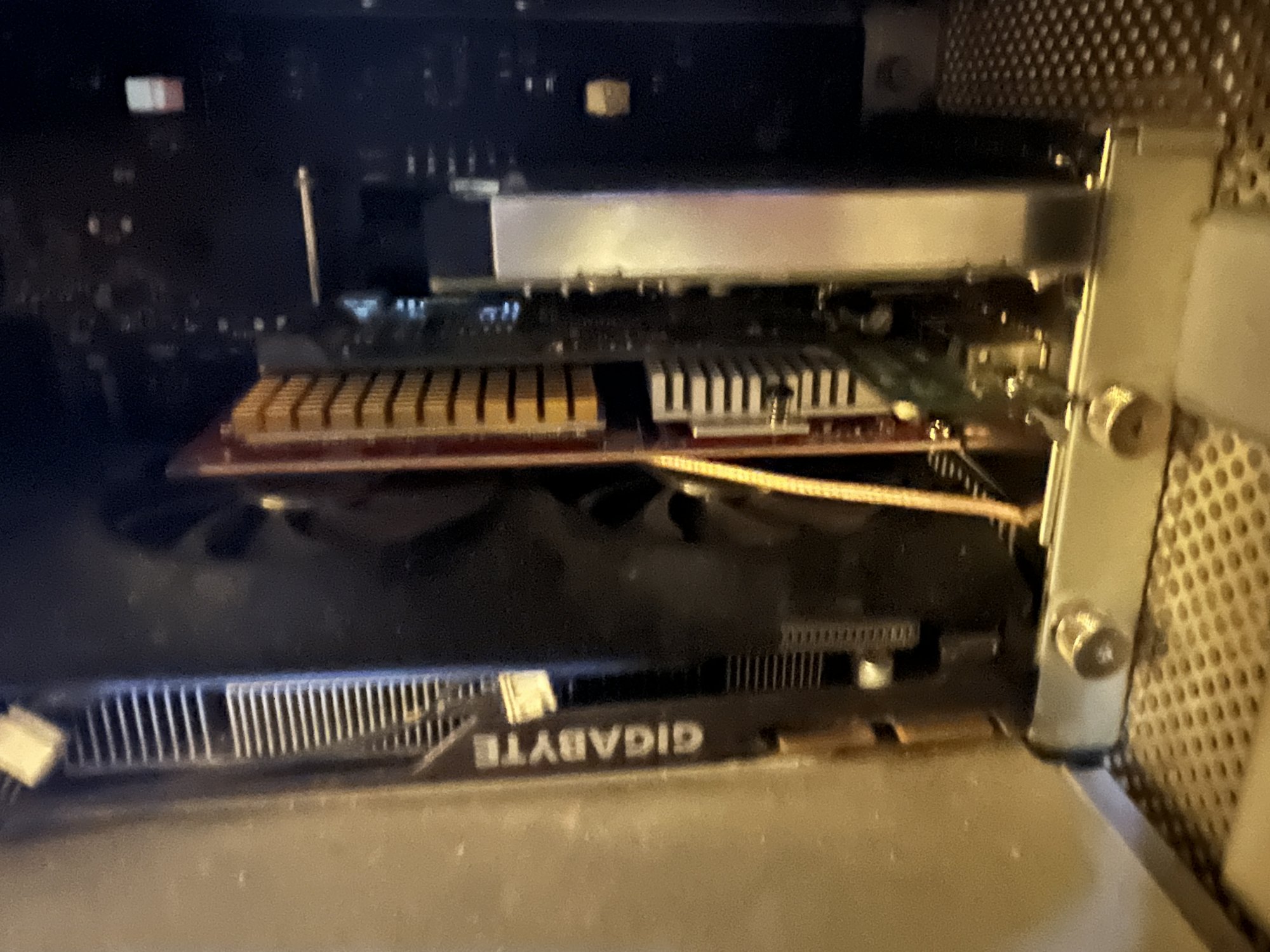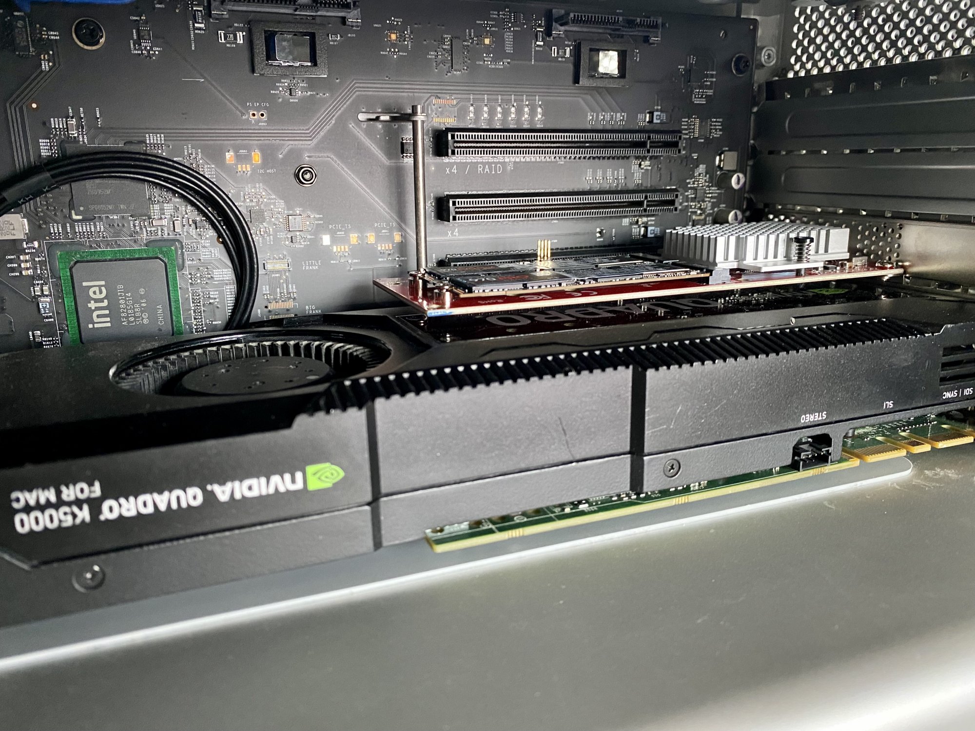 I had the same issue with 2+ slot HD 7970 - wondering if a short L shaped PCIe extension cable can fit thereIt has to be in PCIe slot ##2 in the 5,1 to get those speeds right? My RX700XT eats into slot two so I can't use it. Only slot 3 is available and its a 4X slot. I have a Titan Ridge in Slot 4.