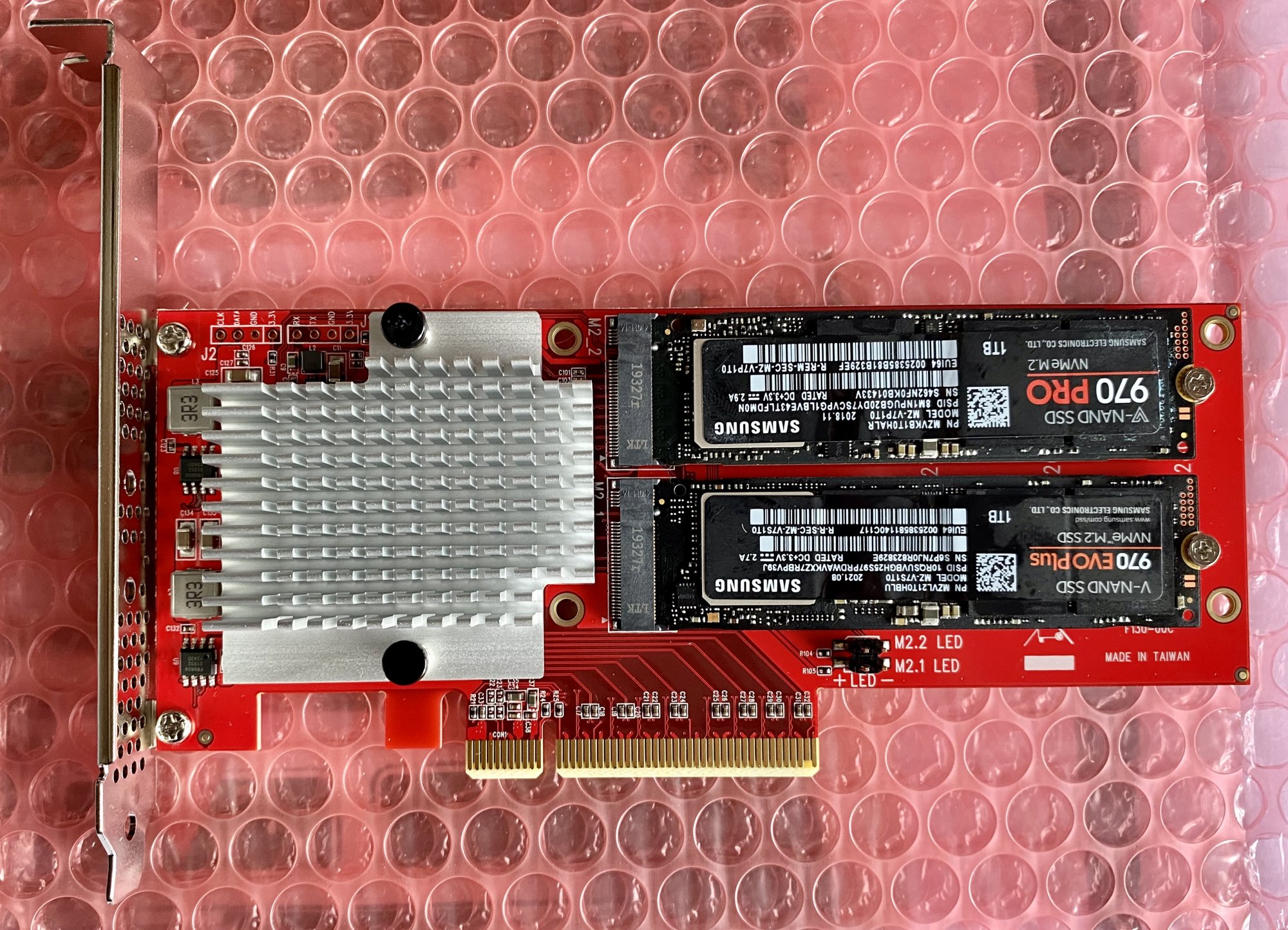 Just bought and installed the Startech card, with a 2Tb and 1Tb 970 Evo Plus blades - put it in slot 1 with my RX580 in Slot 2. Temps up a few degrees but upping the inlet and exhaust fan speeds a couple of hundred revs fixed that. Speeds are the same as @GlynH, a step up from my Kryo M2 card.Well the StarTech PEX8M2E2 with two Samsung 970 blades is up & running.