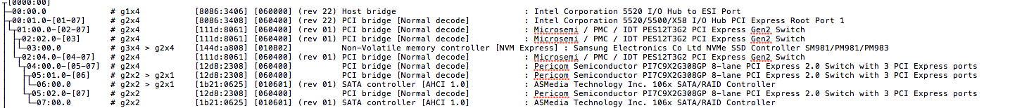 Attached is the entire pcitree. @joevt I thought slot 4 was supposed to be running at g2x2 speed?I am not clear which link width applies to which controller / parameter?