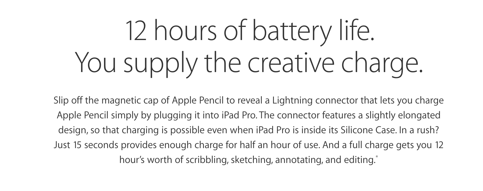 .. Definitely get a screen protector, haha.I am getting the pencil when I get my Pro for a educational tool for my kids. My 5 & 7 year old kids will love drawing on the iPad and I am sure I will enjoy it for certain graphic applications. As mentioned above, there is certain to be a extra charging option. It's the Apple way. Owning a Apple product s like going to a 5 star hotel. There is going to be alot of side tipping and side charges for the price of admission.
