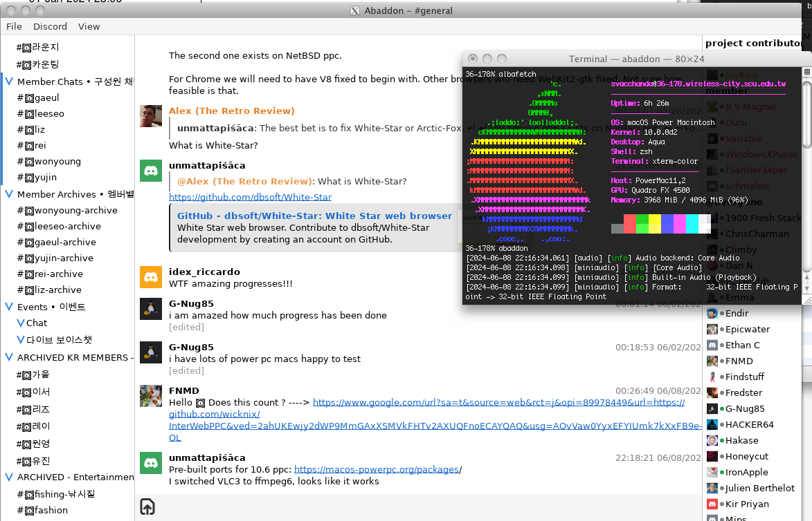 Hello! i recently found a discord alternative client with the name "abaddon" and i asked myself "can i build/compile it on my imac g3 with openbsd?" well, the answer is yes!