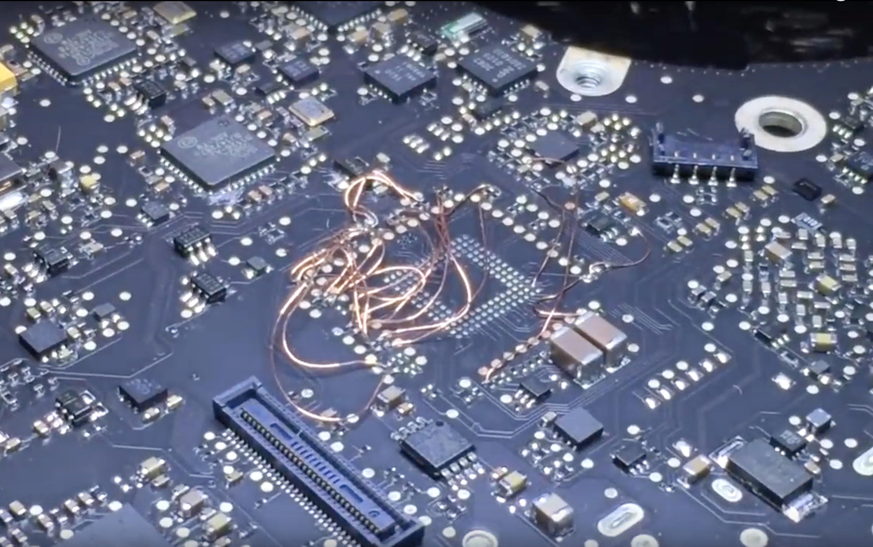 Once the chip is removed and the pads are cleaned, each LVDS data line from the LVDS_IG side needs to be connected to its corresponding data line on the LVDS_CONN side. Of course, to do this, the use of small bodge wires is required. I used 0.1MM jumper wire (which can be purchased