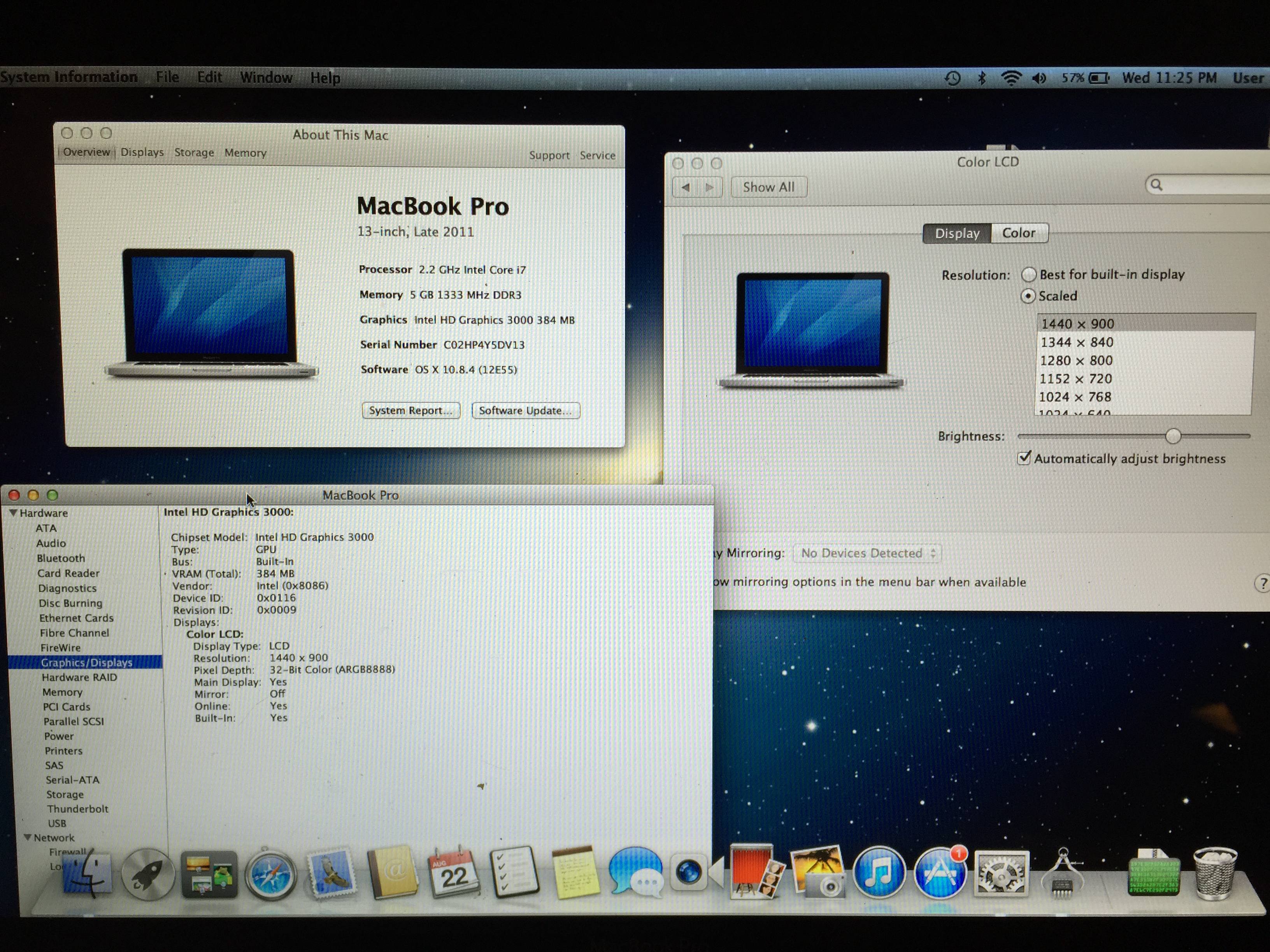 At last, once all that is complete, you are now done! You will now have a fully working 2011 15" or 17" MacBook Pro, running off ONLY integrated graphics! No OS X modifications are necessary, and it is not reliant on any NVRAM variable (obviously). This, short of making custom firmware for the gMux chip, is the BEST solution for rectifying the defective AMD GPU issue on these machines. The only issues are the lack of brightness control as mentioned earlier, and the external display port will not work. Other than that, though, everything works perfectly!