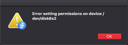 * Cloning Error: Error setting permissions on device /dev/disk4s2*? On the Windows drive.