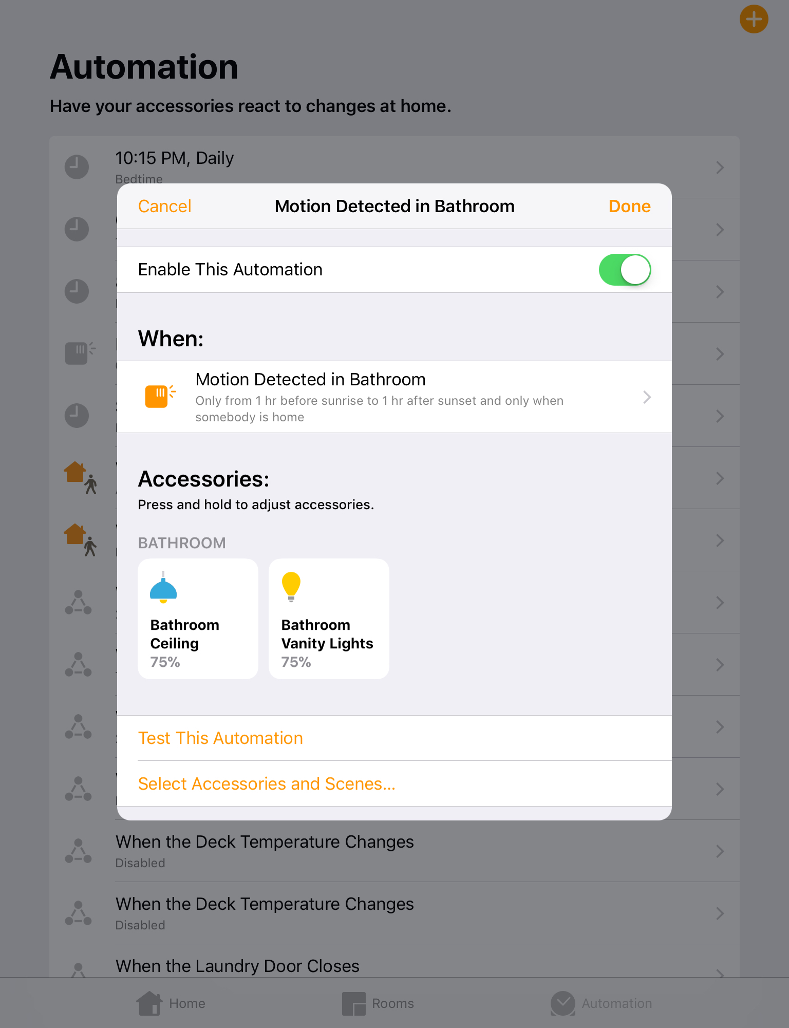 I have an iDevices Socket hooked up to a cheap waterproof LED rope light string from Home Depot, as my porch light. After hooking it up, I spent a few minutes, one time, in the Home app's Automation tab, adding rules to turn my porch light on at sunset, off at sunrise (HomeKit knows precisely when sunset and sunrise are, every day, at your location), and starting at 9pm, it drops the brightness of the porch light by 10% each hour, until it's just a dim glow very late at night (suitable for making it up the steps and finding the keyhole, without lighting up the neighborhood). I had one of those light-sensor-controlled sockets previously, and it never worked right. Simple timers can be set accurately, but then need continual adjustment as the seasons change (an "automatic" porch light that comes on an hour after it gets dark is useless). HomeKit was a bit of overkill for this scenario, but now the porch light behaves precisely the way I want, every night without fail, automatically adjusting for differing day lengths. I don't want the light on full-blast for much of the night, or during the day, and that's not simply about saving power, I simply want it to behave the way I want.