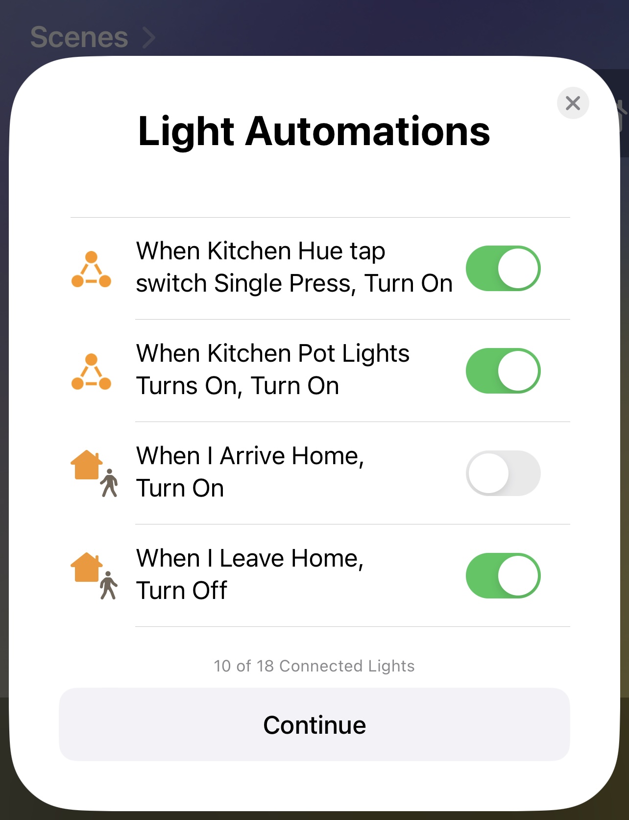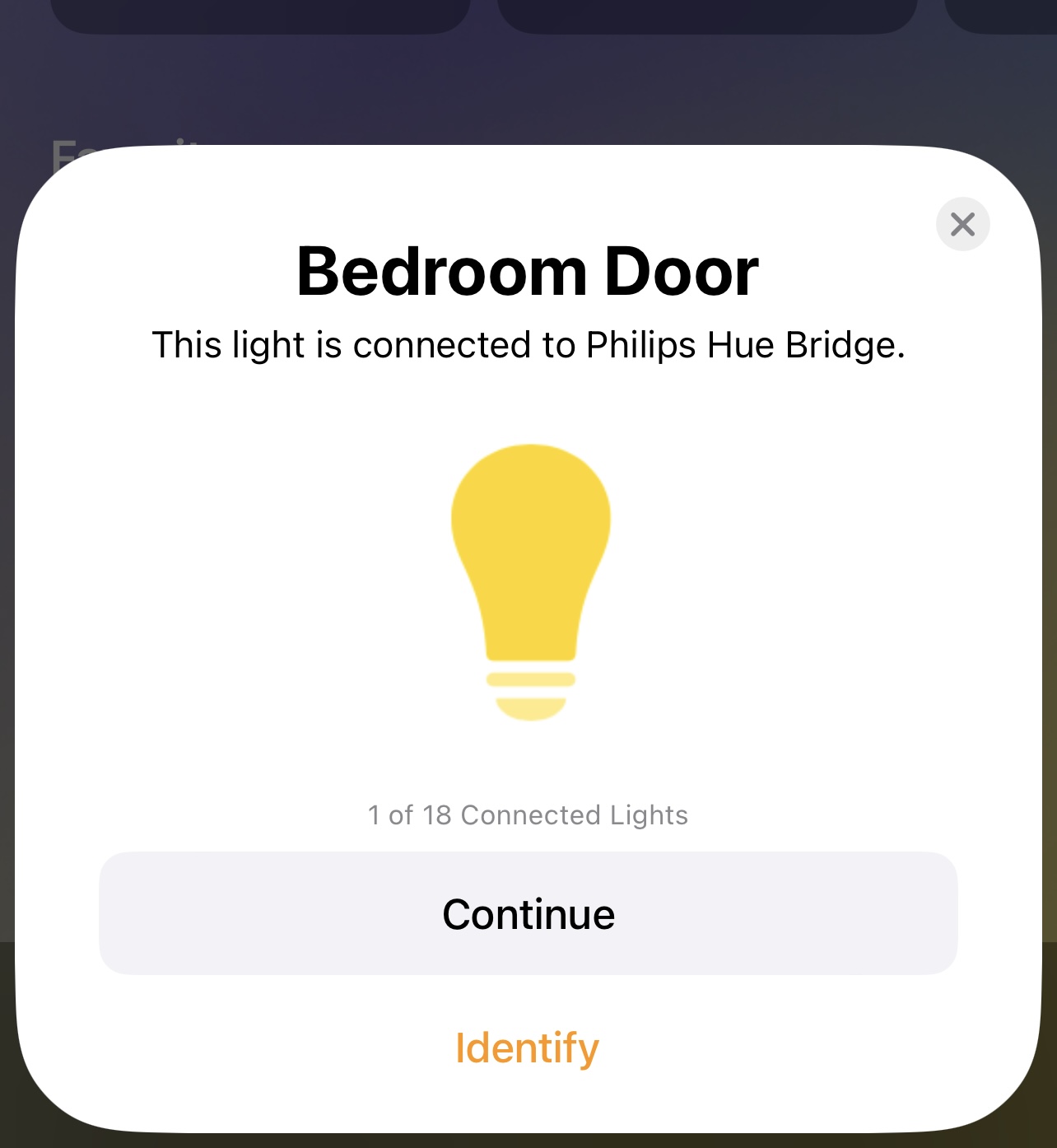After adding the bridge to the Home app, it went through all of my lights in an easy to understand flow, with an Identify button so I knew which one it was asking about, and asked to confirm the room, the light’s name and reviewed the automations that were setup.