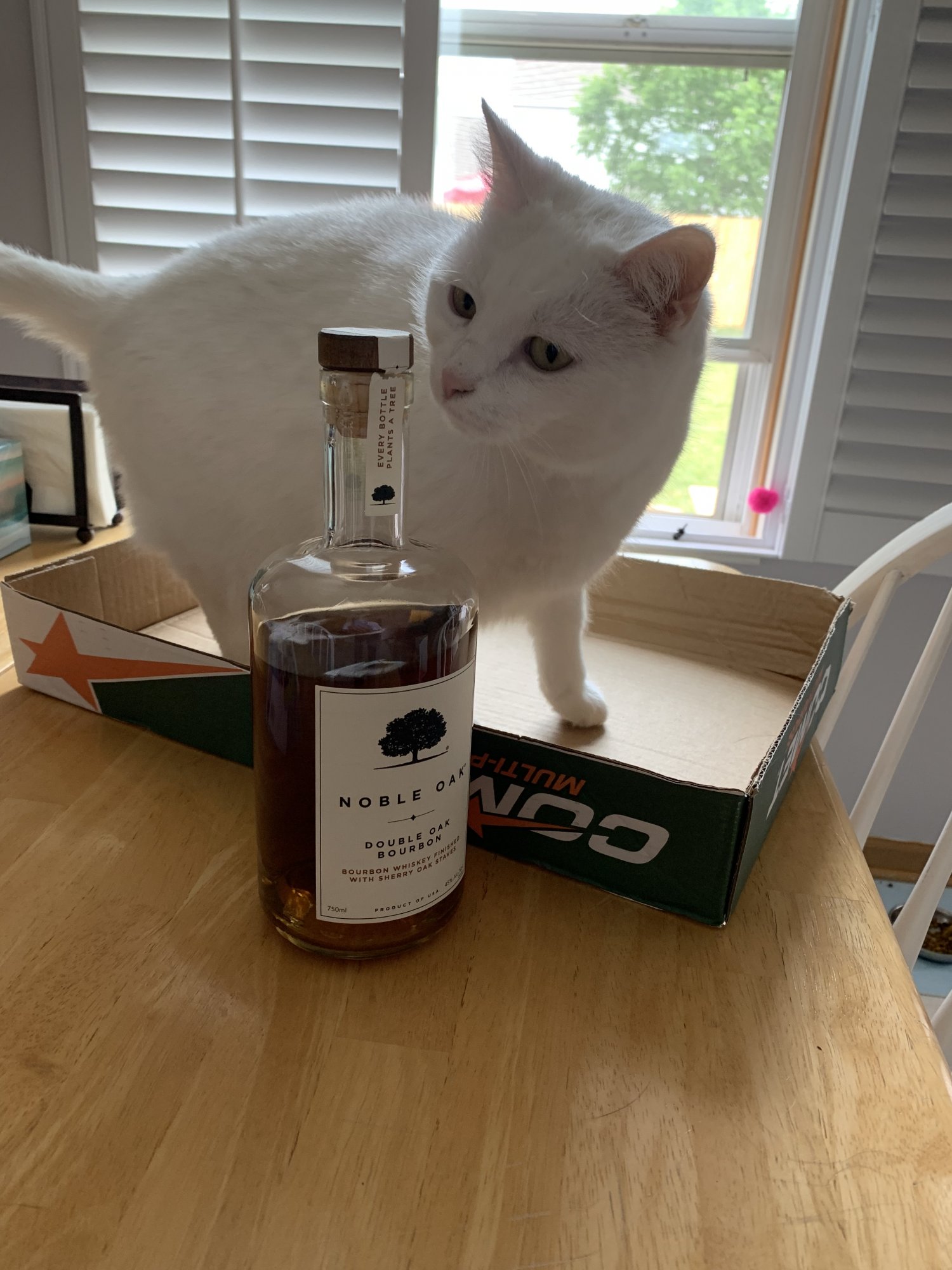 Do your cats get a good nights sleep when they drink?We had some friends over the weekend before last and provided the food and beer. They were nice enough to gift us this bottle of alcohol in return.