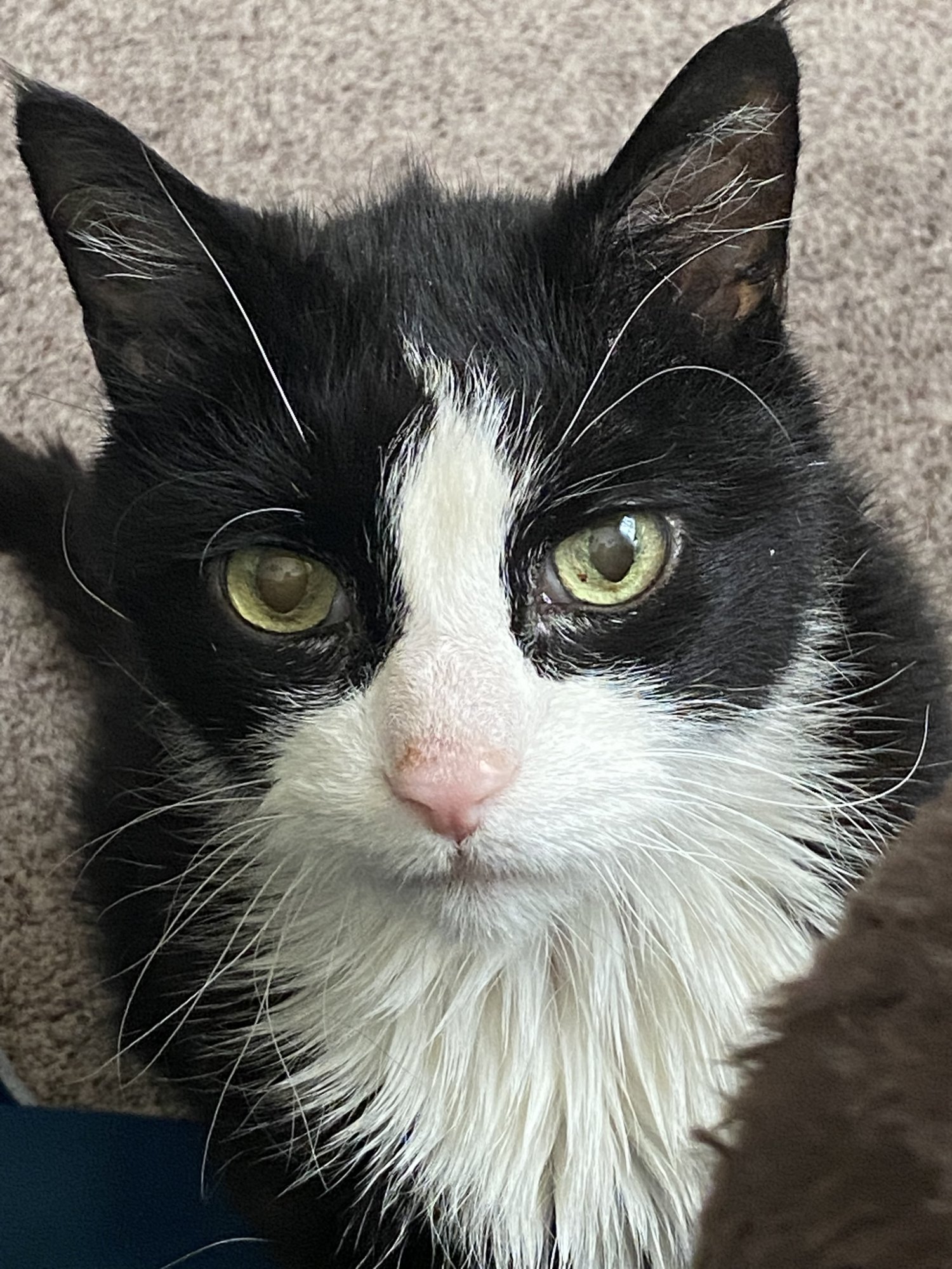 I have an outside stray too that lives in my yard that I take care of that looks just like him too. My kitty's name is Mousse but we call him Moo and the outside one we named Mini Moo.