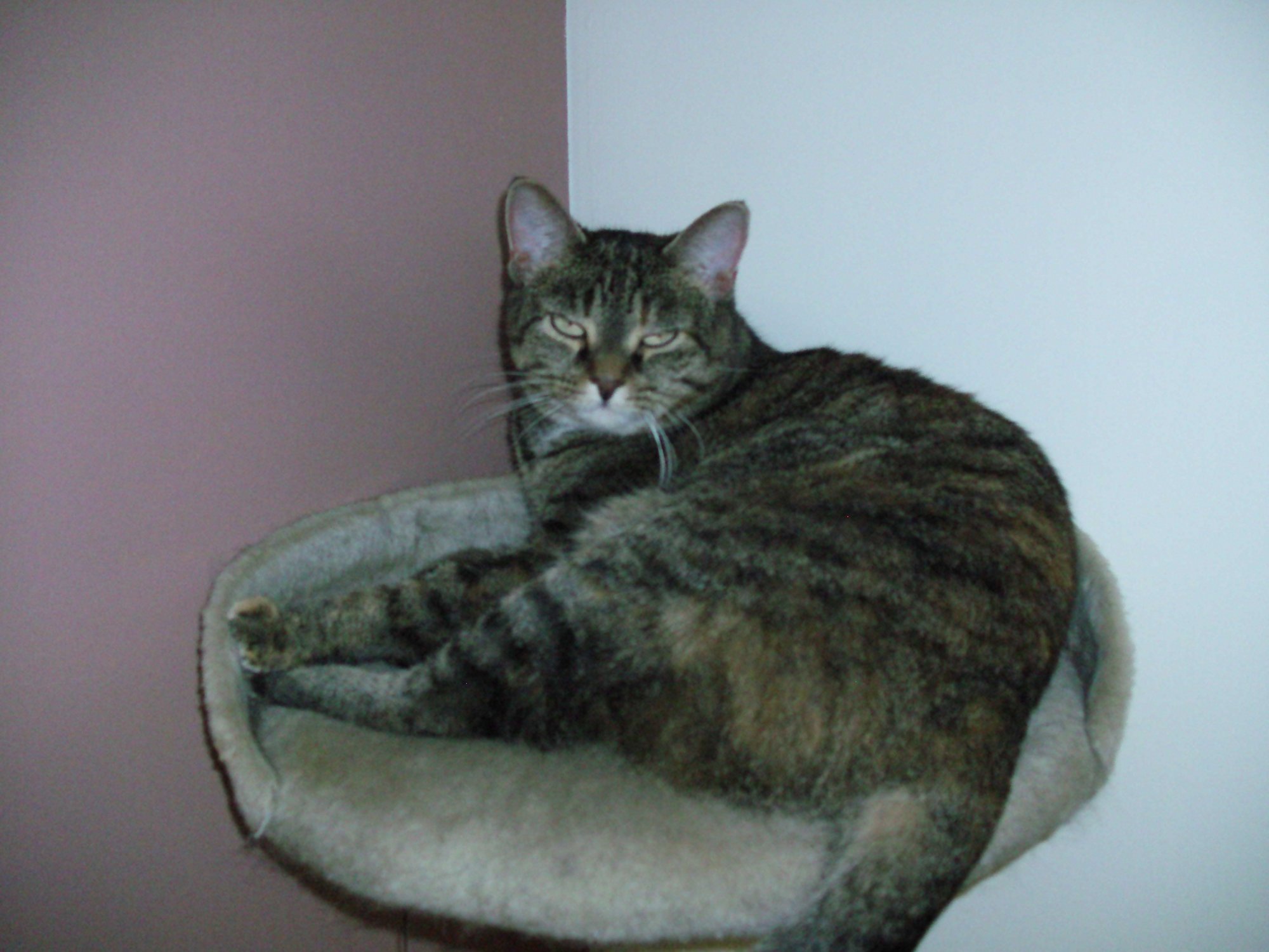The wife had a cat when I met her, and he was really quite a character. If you called him, he came running. When I blew on him, he would shake his paw. I usually interacted with him on a bed, chair, or couch, and would put my hand on his side, and flop him down and rub his back and belly. She walked up to her bed one day, and he was standing there, and then flung himself on his side and started purring like mad. He LOVED IT!