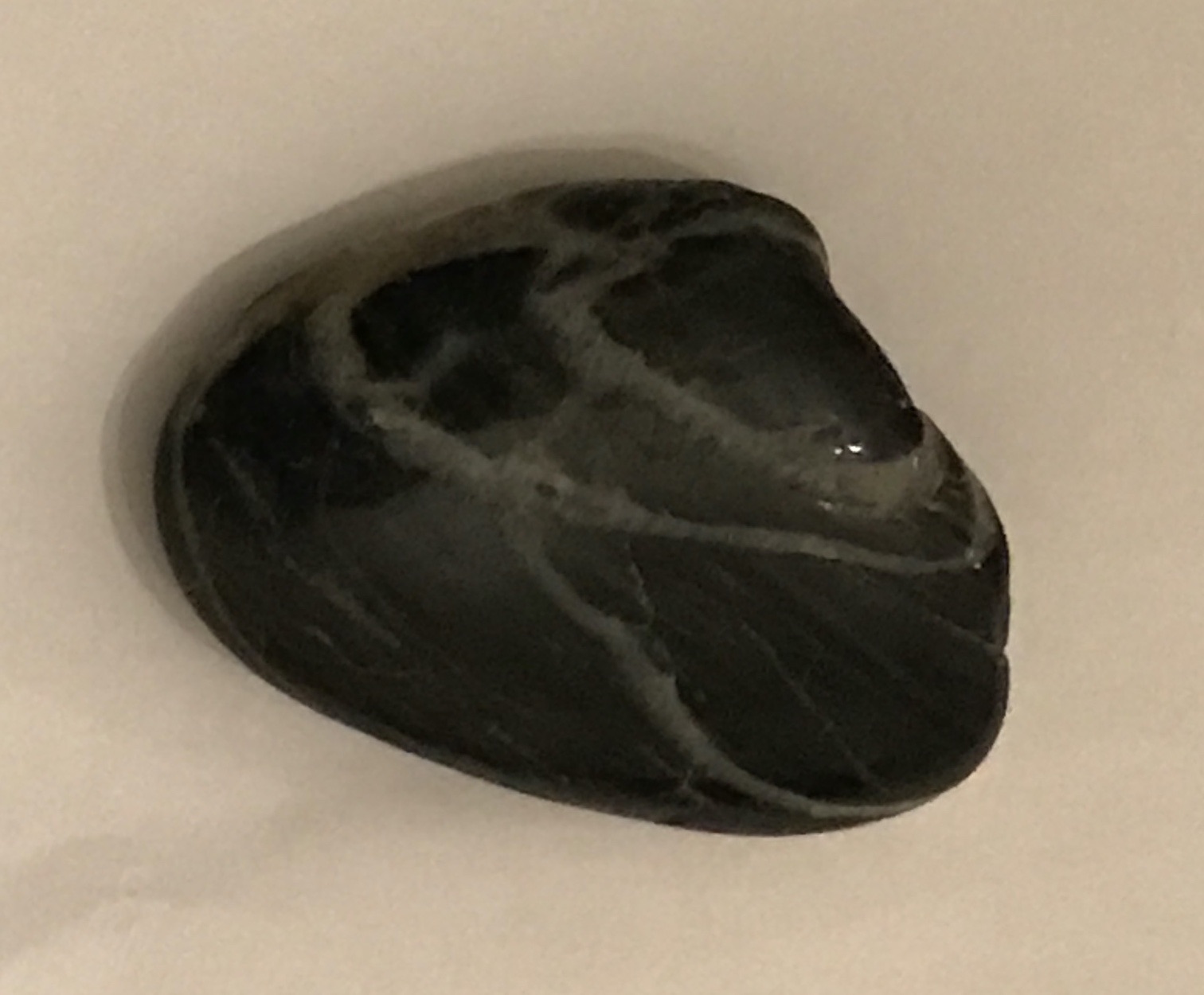 When one of our cats dies, we get them cremated and the big of ashes is in a nice little box.Story of this stone. One of the stray cats in my yard that I take care of had kittens and one of them died. I buried the kitten in my yard about 1 hour afterward when i went back in the yard this stone was laying on the dirt in the spot that I buried the kitten.