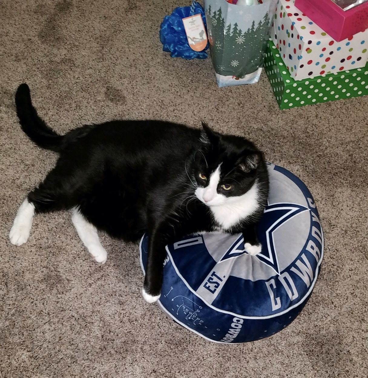 sorry, I guess @Captain Trips did not jump to your side, guess he used the remainder of his cat photos up in his battle last night 🙀A star and USA America's Team pillow plus a cat. Go Cowboys! ⭐️