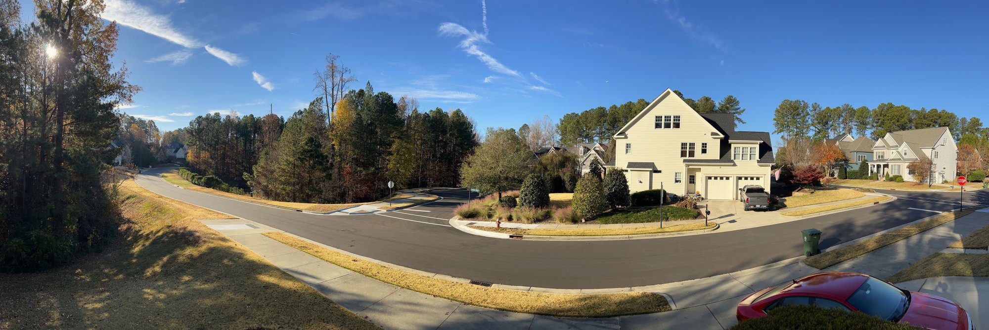 Thank you! I used the "Pano" function on the stock camera app on my iPhone 13PM. I attached a shot of my neighborhood I just took also.This is a cool photo; what kind of lens did you shoot it with?![]()